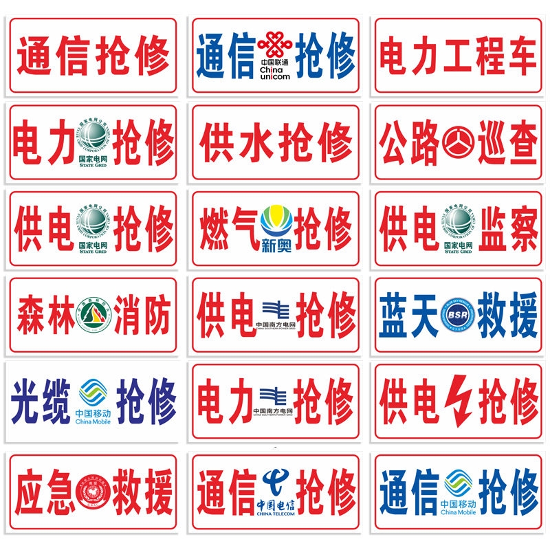 速发应急程援警示电网通信标志牌通信抢修公路巡查电力工救车森林