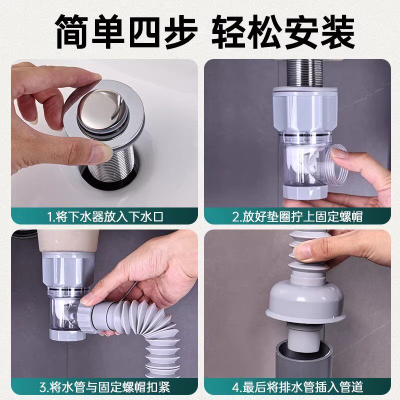 洗手盆面盆下水管排水管防臭漏水塞洗脸池下水器配件洗脸盆弹跳
