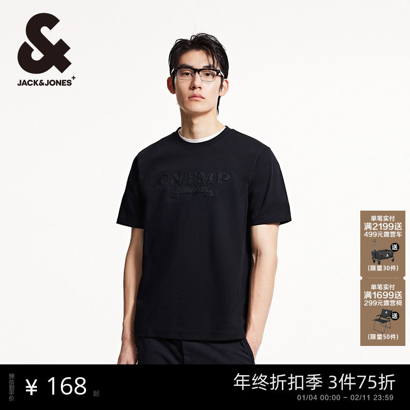 杰克琼斯男装2025年秋季新立体贴布商务休闲纯棉舒适短袖男款T恤