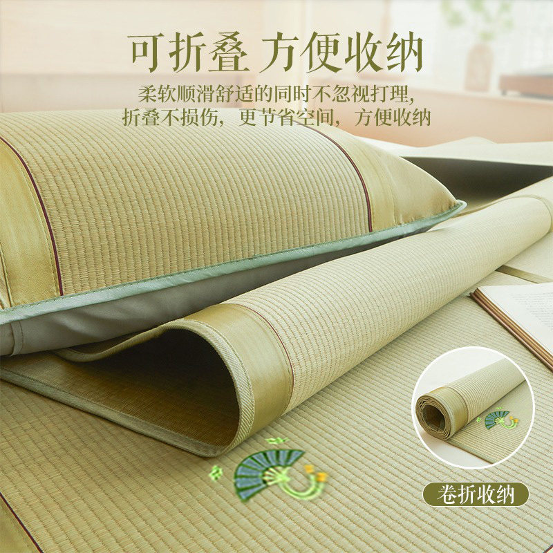 艾草加厚2025新藤席子凉席双人可折叠冰丝席竹席单人学生宿舍夏天