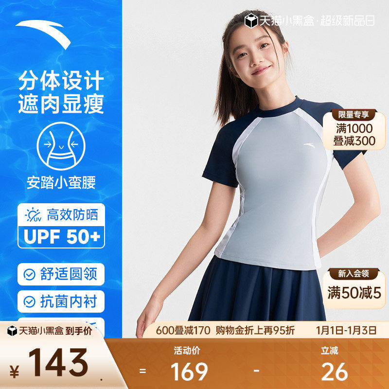 安踏小蛮腰丨分体泳装海边女子修身显瘦裙式游泳衣泳裙新官方正品