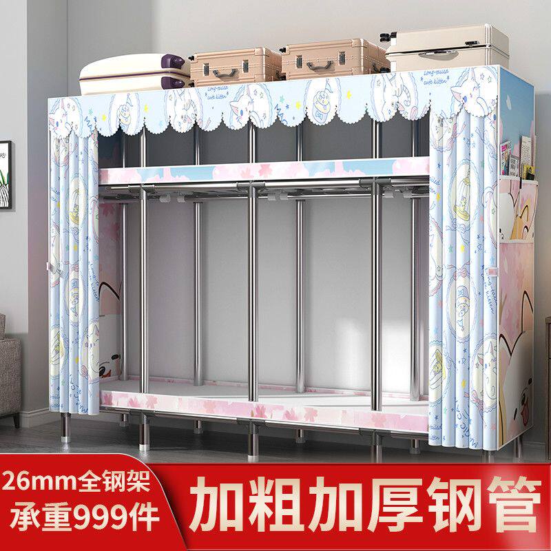 升级加粗钢管全钢架简易衣柜简易布衣柜加厚合金接头对开门宿舍