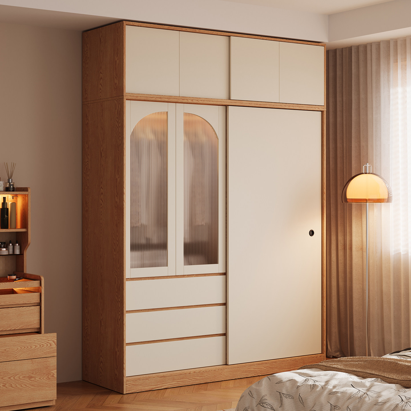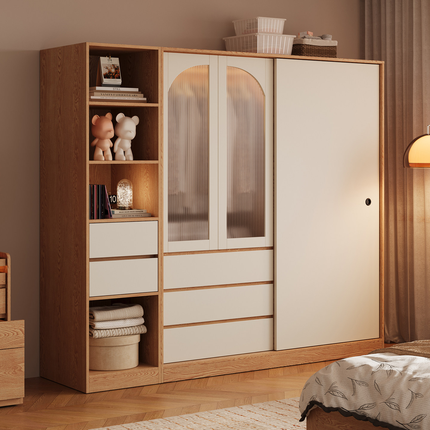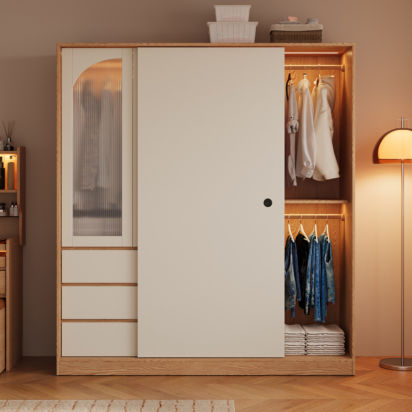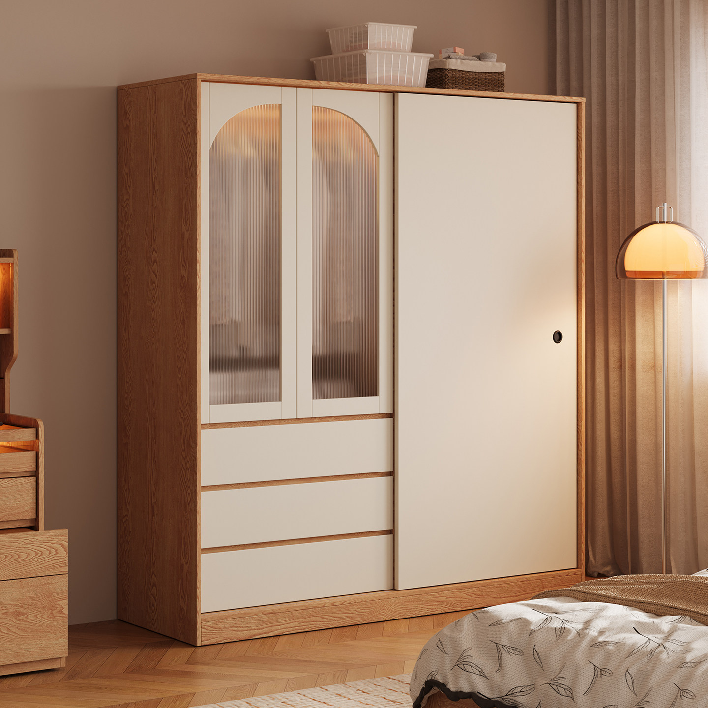 木兜家具简韵衣柜家用卧室实木大衣柜儿童单推拉门款2026新款衣橱