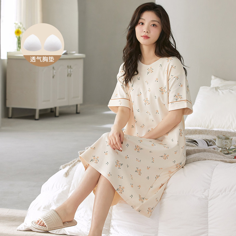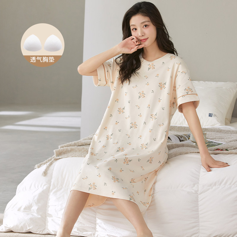 2026新款爆款夏季睡裙女纯棉绝美短袖睡衣带胸垫女士奶呼呼家居服