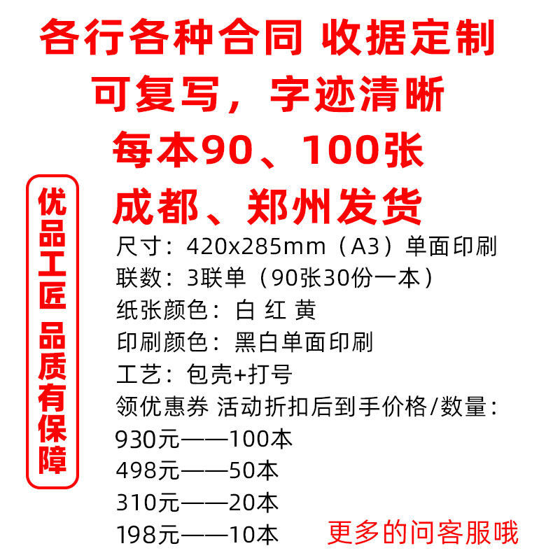 优品工匠合同定制印刷联定做全屋二联三联单复印打印制作收据单据