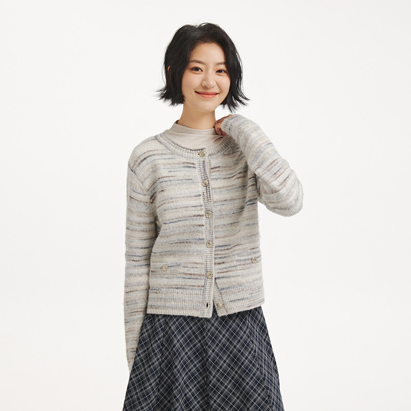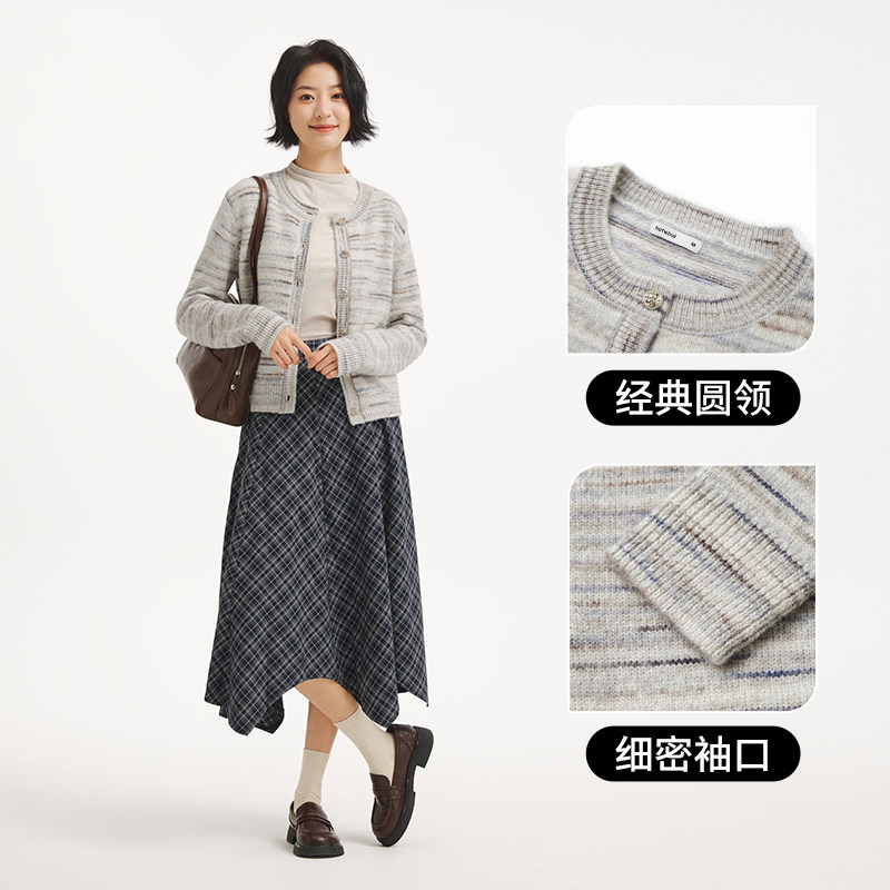 热风2025年冬季新款女士复古精致慵懒感花纱渐变针织衫宽松有型