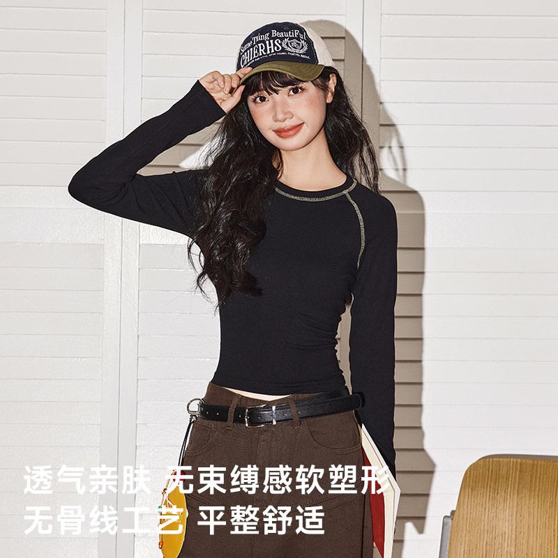 莫代尔无痕打底衫女春夏长袖内搭T恤纯色薄秋衣修身圆领柔软上衣