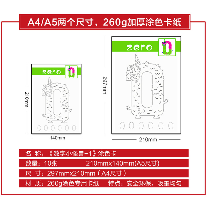 数字小怪兽涂色涂鸦填色卡片幼儿园启蒙认知卡专注力训练卡色彩