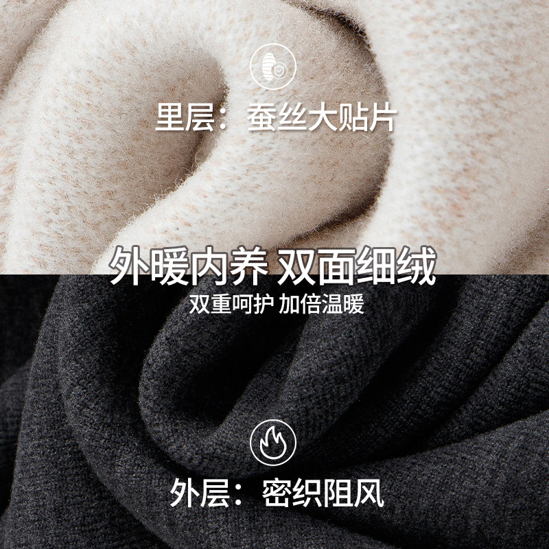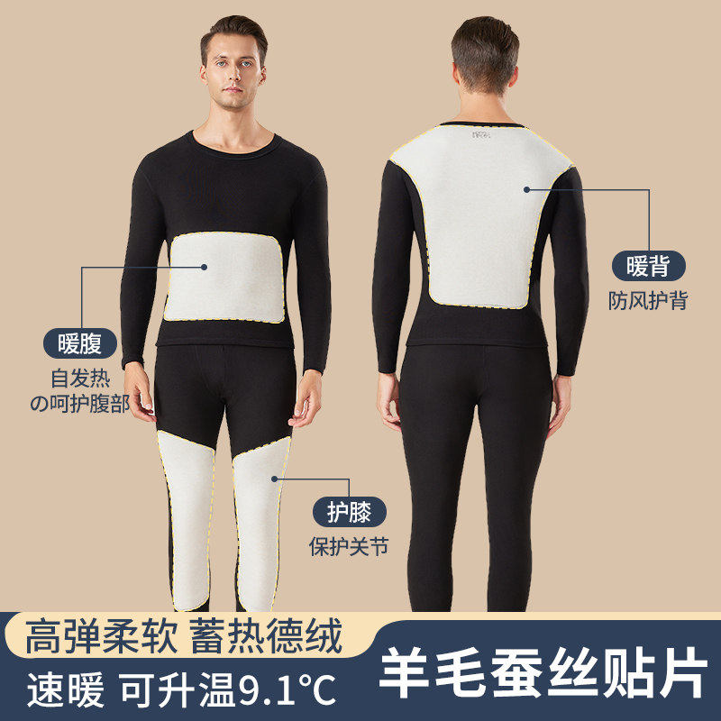 羊毛蚕丝贴片德绒保暖内衣套装男士冬季加绒加厚护膝秋衣秋裤加长