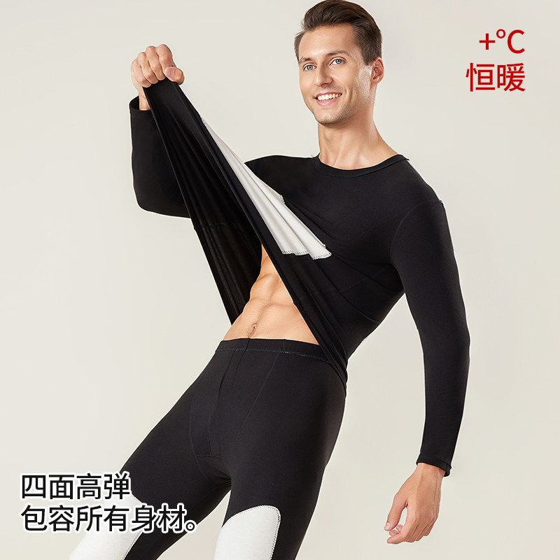 中高领保暖内衣男士加绒加厚套装大码德暖绒秋衣秋裤打底棉毛衫冬