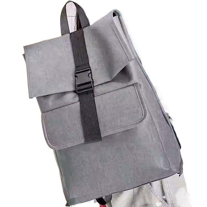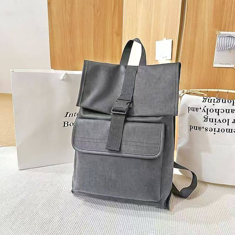 2026年新款时尚户外商务电脑背包男包灰白色翻盖压胶饰层双肩背包