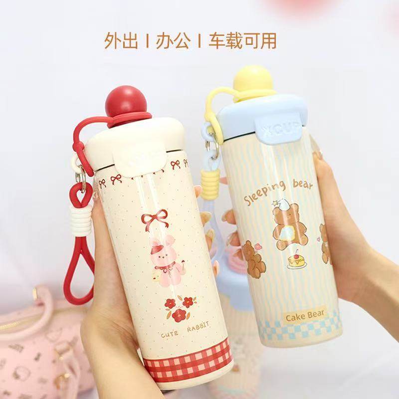 ins风高颜值保温杯浮球杯卡通大容量316吸管杯学生户外提绳可爱女