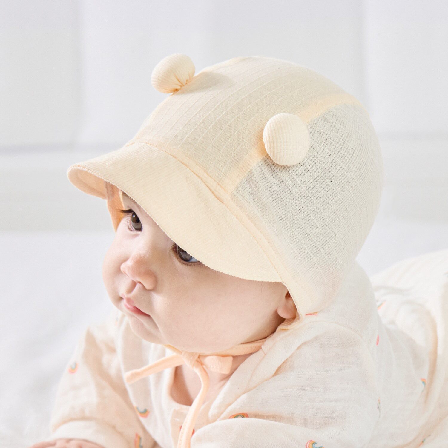 婴儿帽子春秋款小月龄遮阳帽防风新生儿薄款小胎帽宝宝初生护耳帽