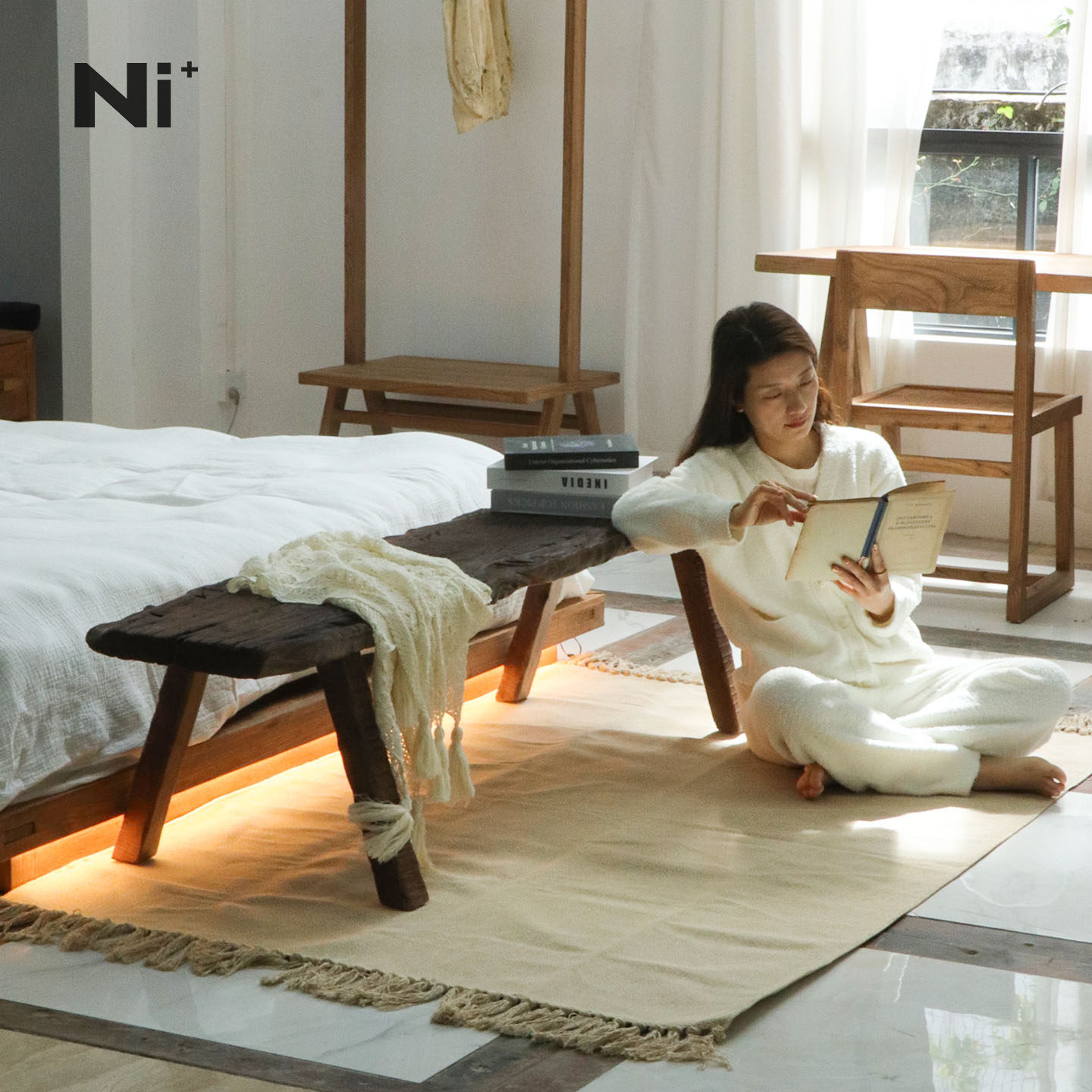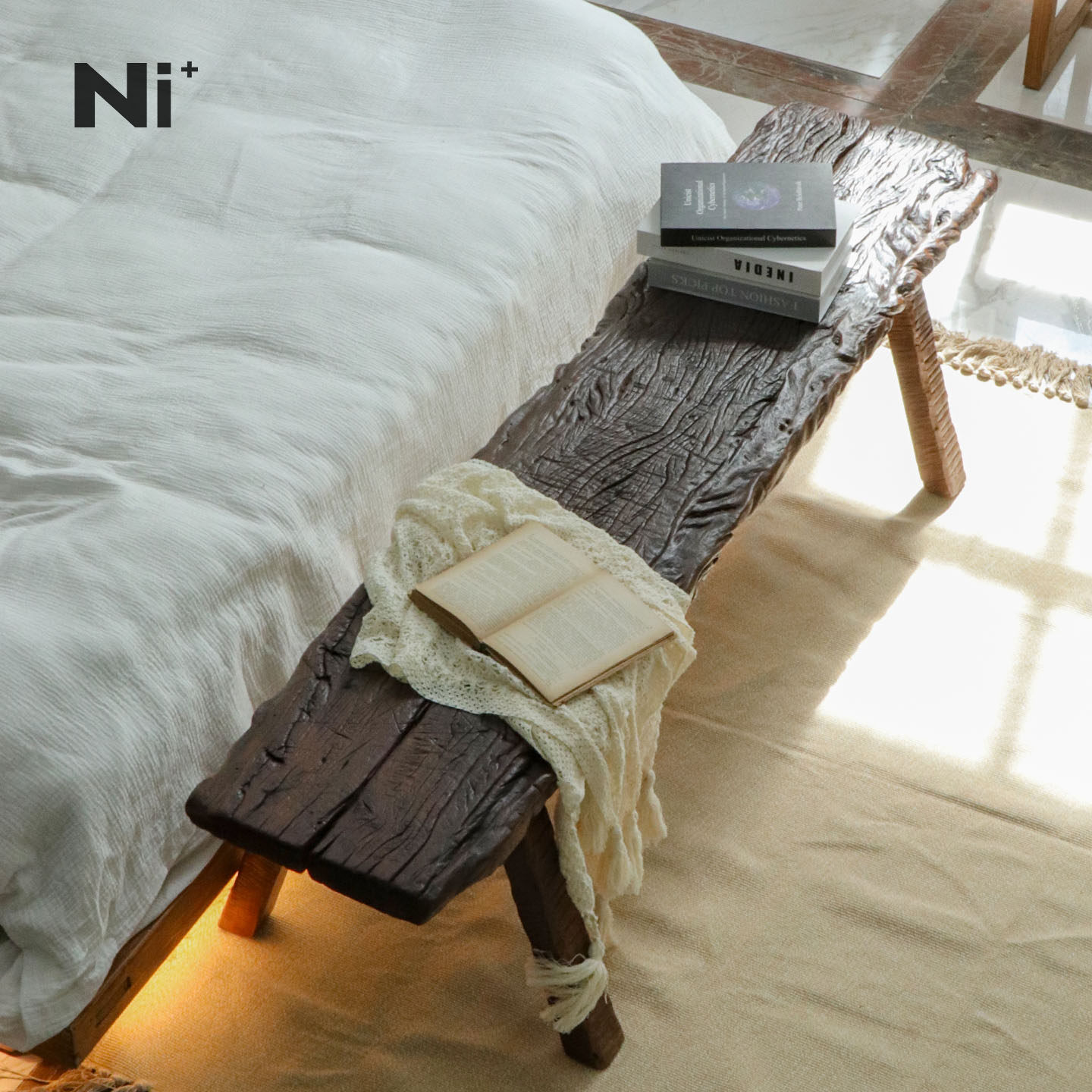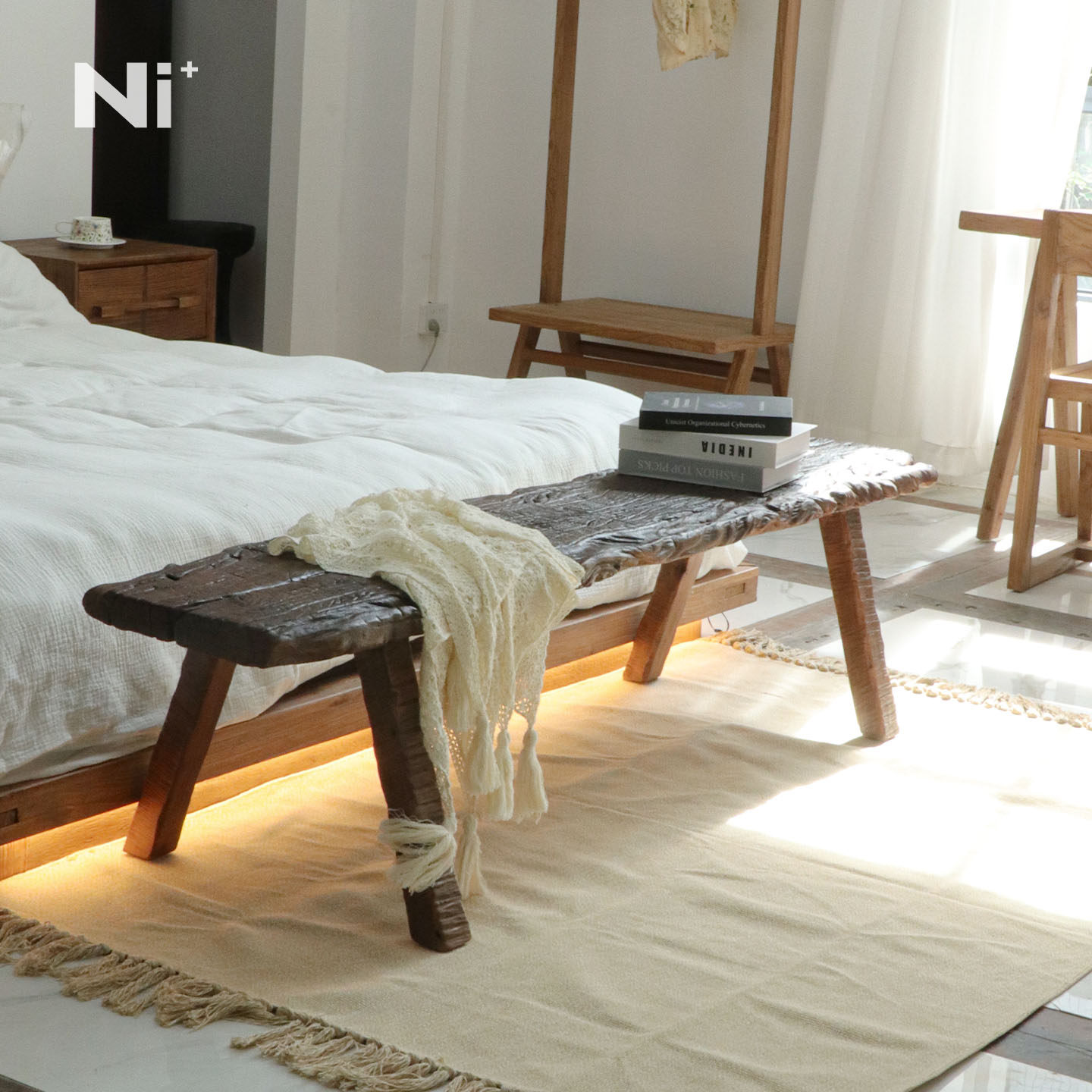 Ni尼家侘寂风卧室床尾凳中古民宿设计师玄关长条凳民宿实木换鞋凳