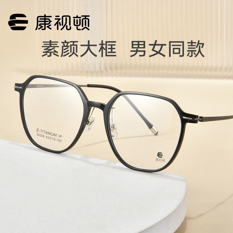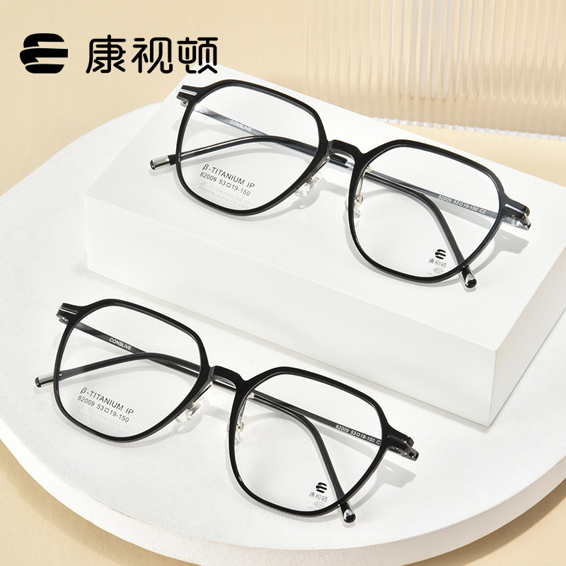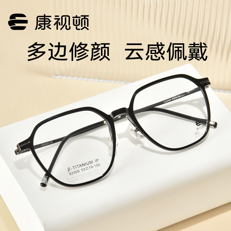 康视顿眼镜多边修颜黑框云感素颜大框β钛架 可配近视有度数82009