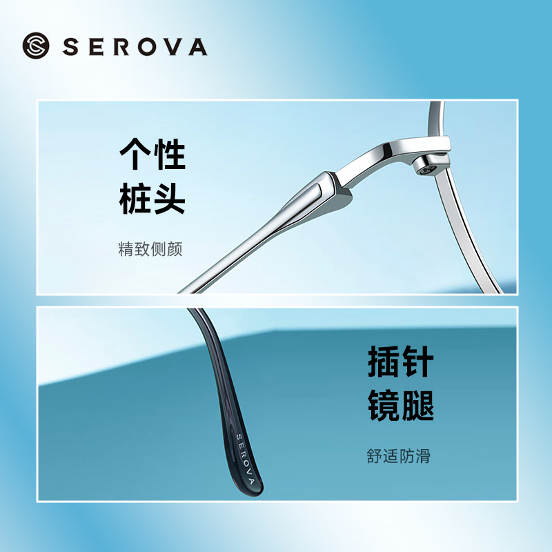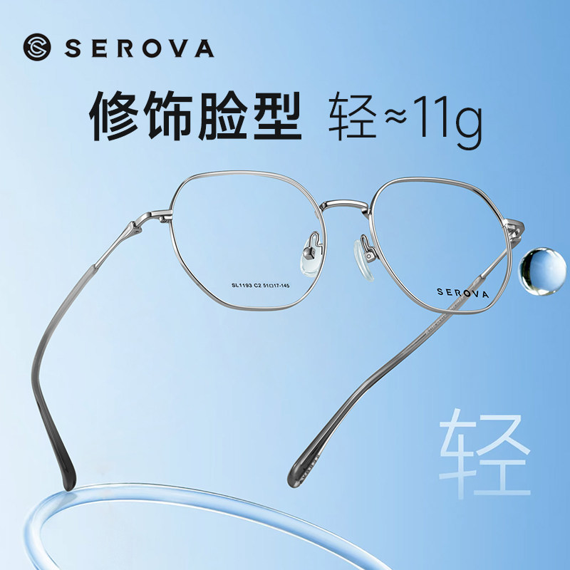 SEROVA施洛华眼镜超轻银色男女高级感多边形框近视眼镜架SL1193