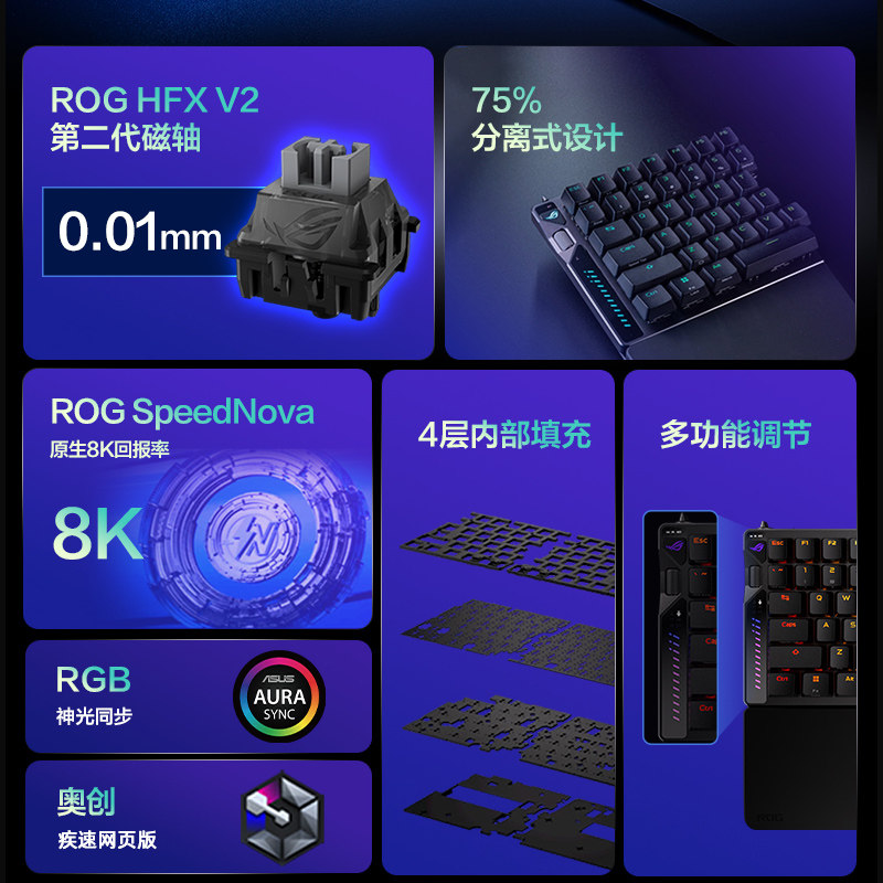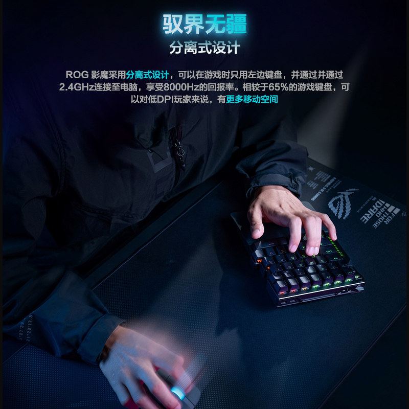 ROG影魔 75%分离式键盘HFX V2磁轴无线8K回报率 多功能调节操作