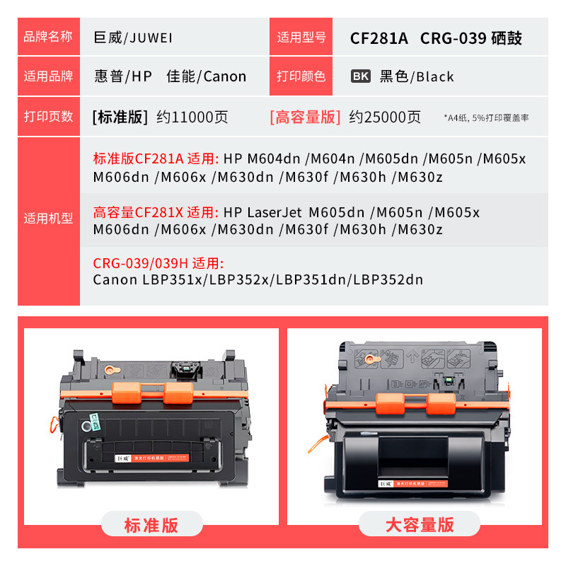 适用惠普M605dn硒鼓CF281A M605n M604dn/n M625dw M630dn M606 hp81a粉盒佳能CRG039 LBP351dn LBP352dn墨盒