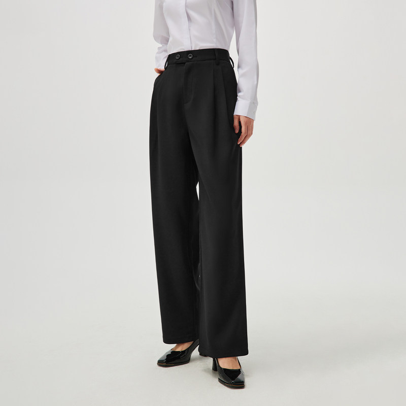 HLA/海澜之家时尚西裤春秋新款修饰腰型舒适职业黑色裤子女装