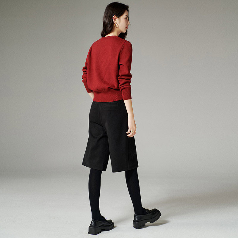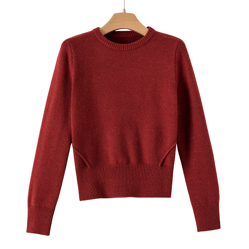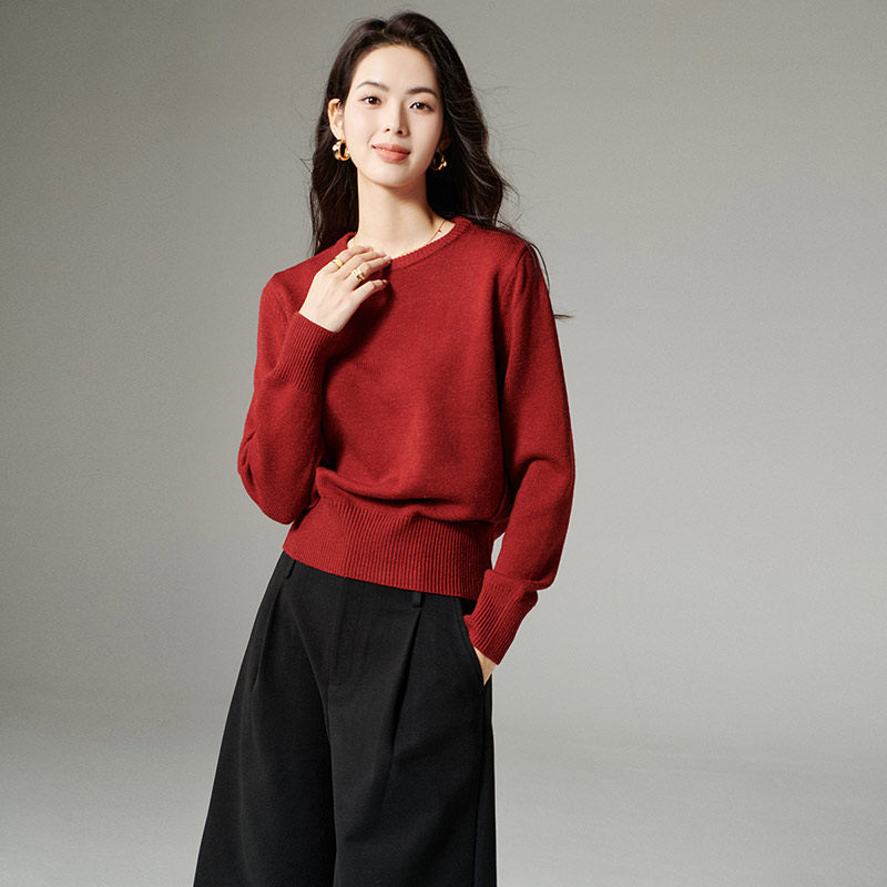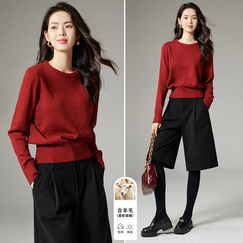 晚白2025年秋冬新款简约新年收腰上衣气质红色时尚含羊毛针织衫女