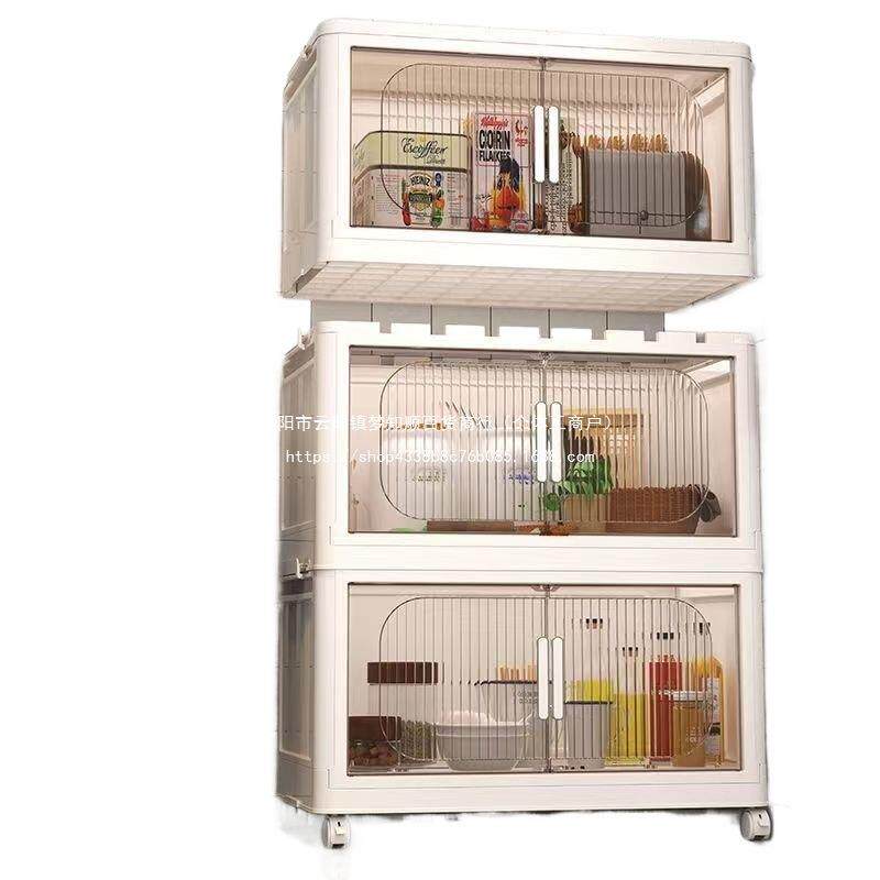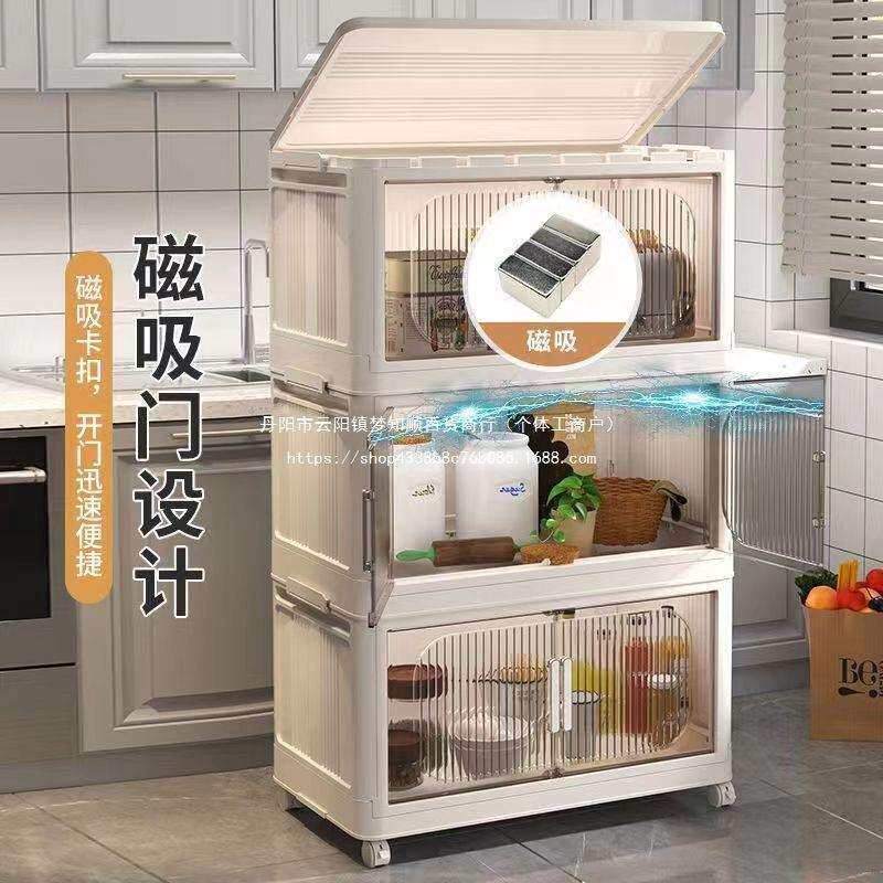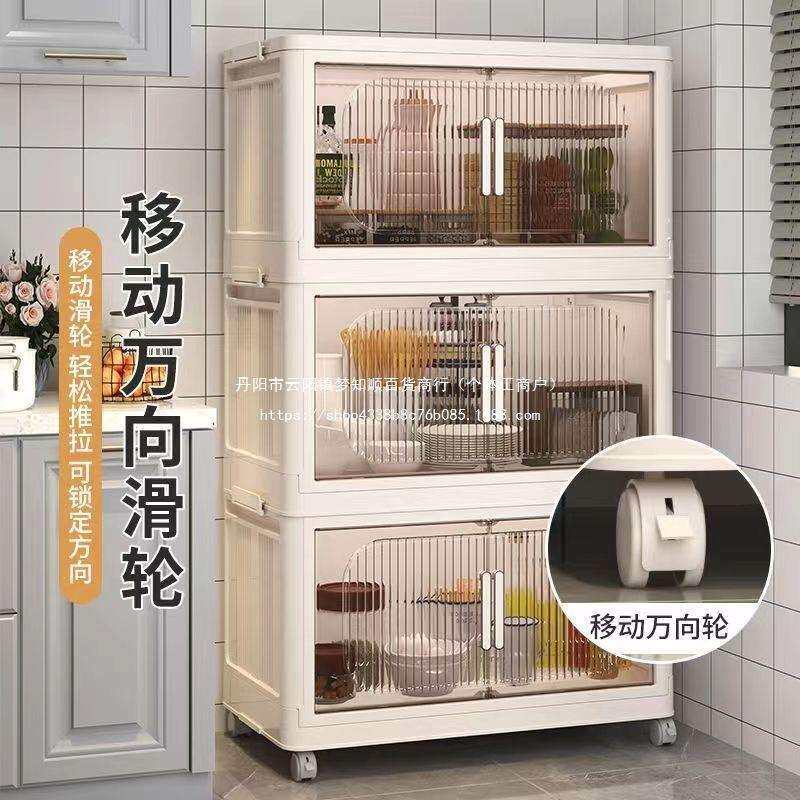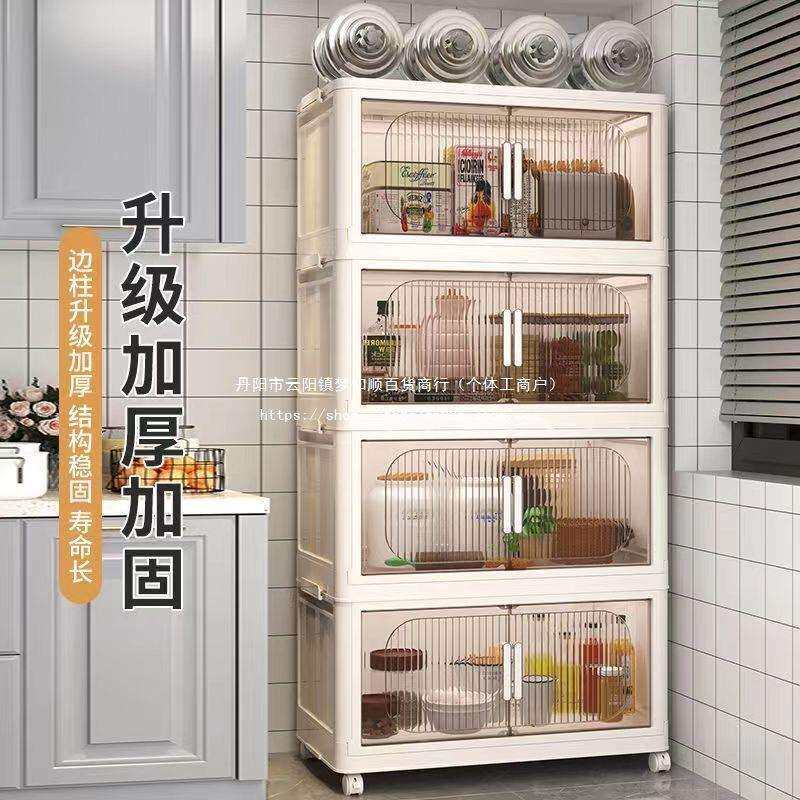 厨房置物架落地多层置物柜带门多功能橱柜碗碟锅具餐边柜储物塑料