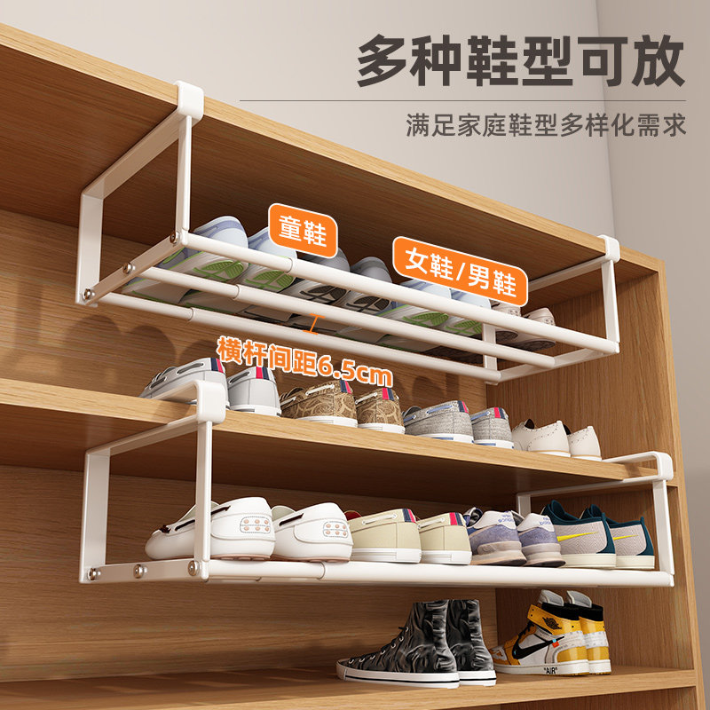 家用鞋柜收纳神器省空间分层隔板柜子可伸缩鞋架下挂式悬挂置物架