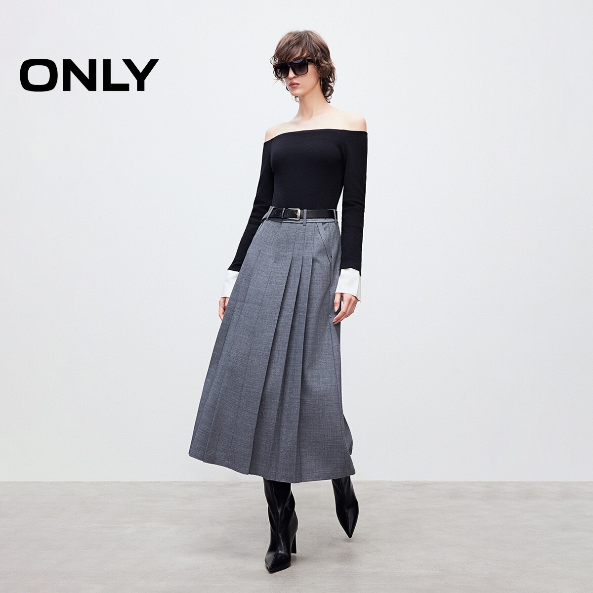 【ONLY奥莱】春季新款优雅学院风A字百褶裙长裙半身裙女