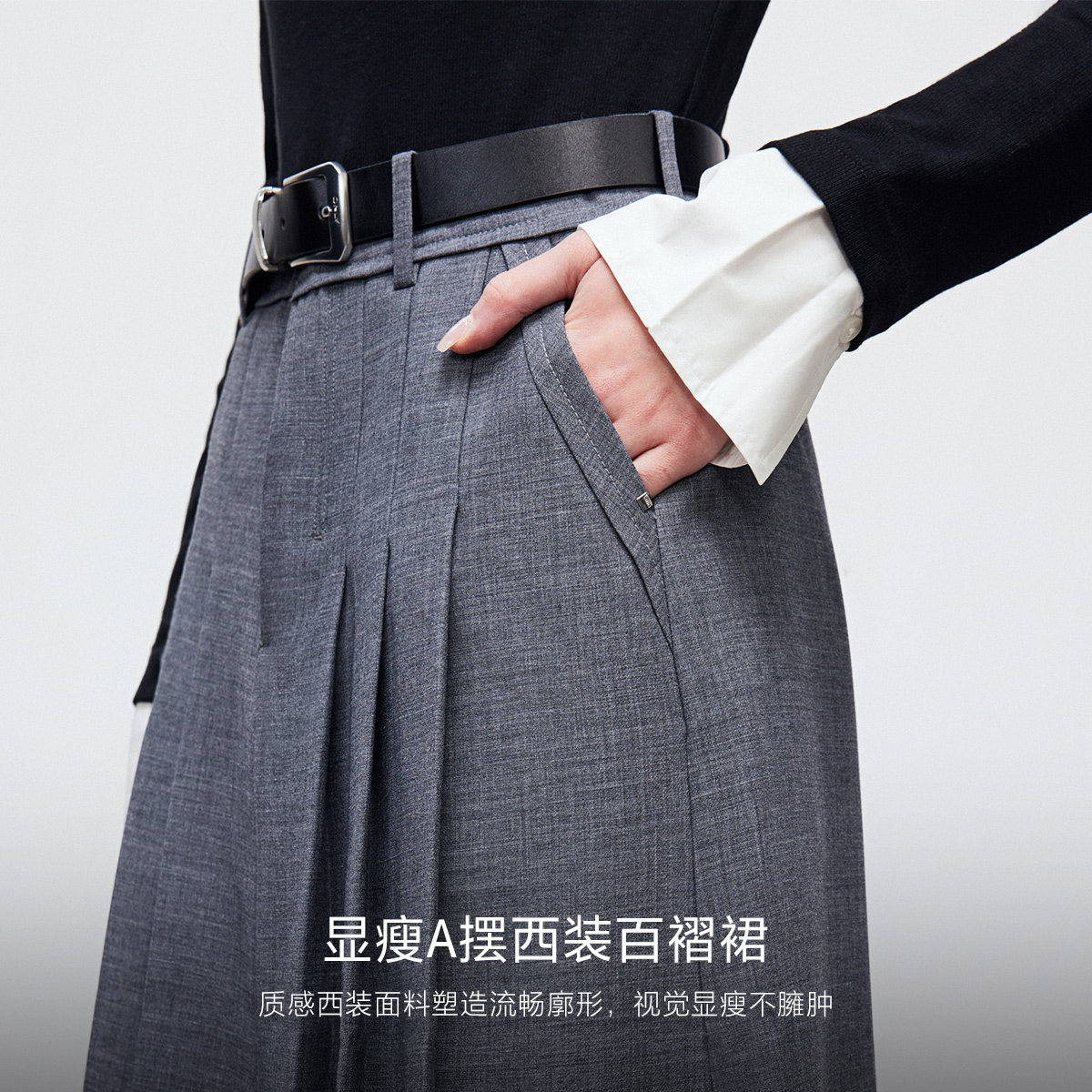 森马半身裙女夏季松紧腰肌理垂感分割A字裙宽松松弛感山本风长裙