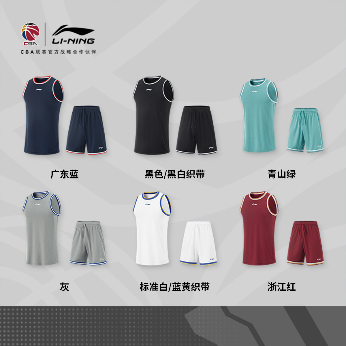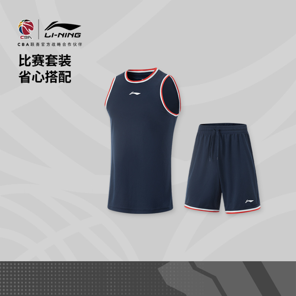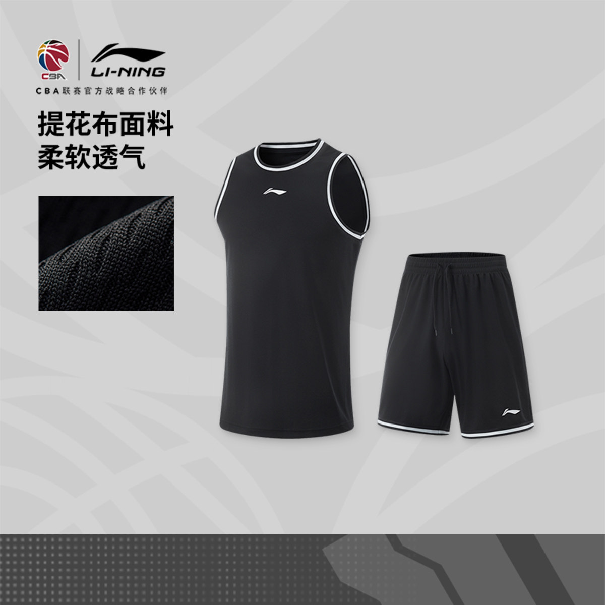 李宁CBA专业篮球系列篮球比赛套装男士官方新款凉爽针织运动服男