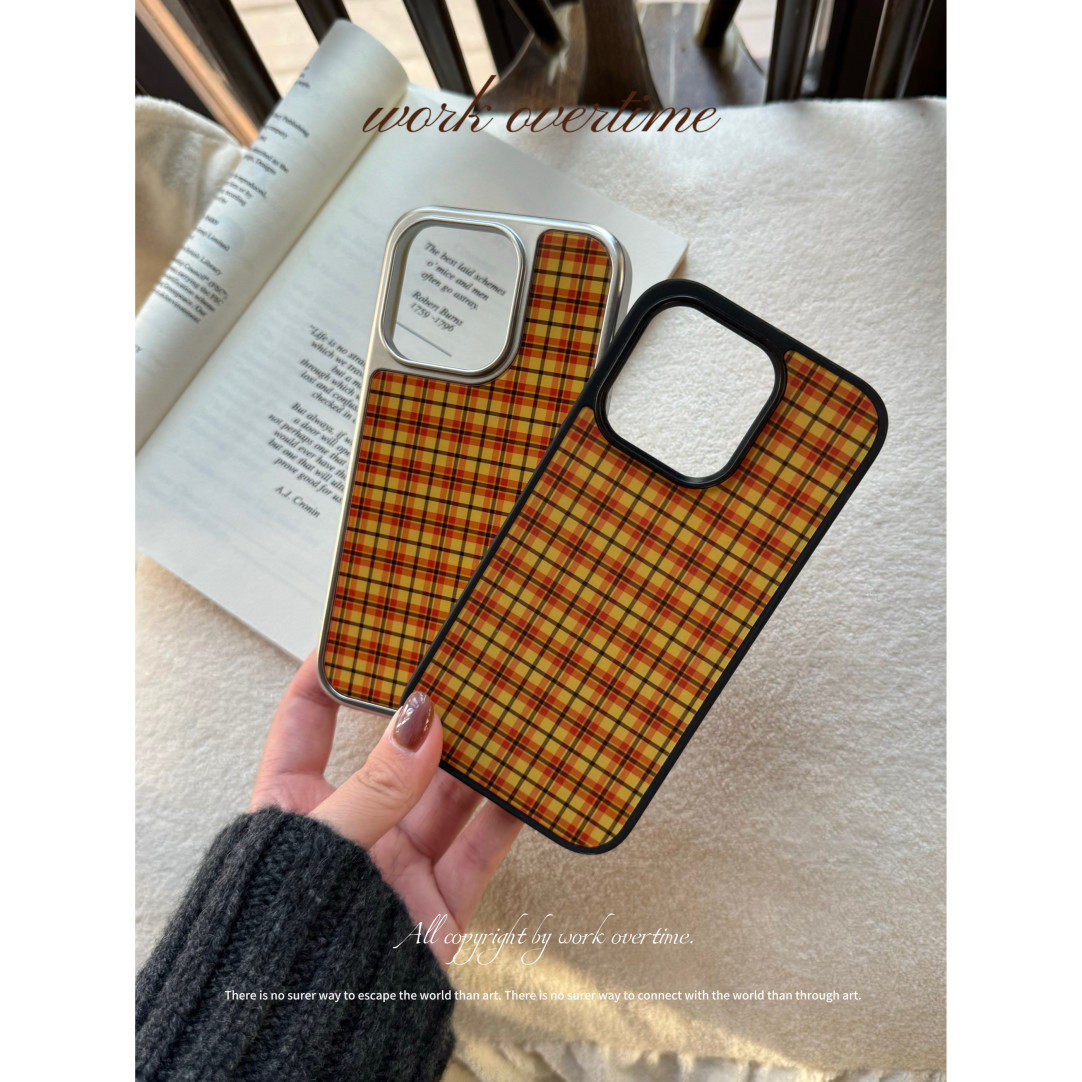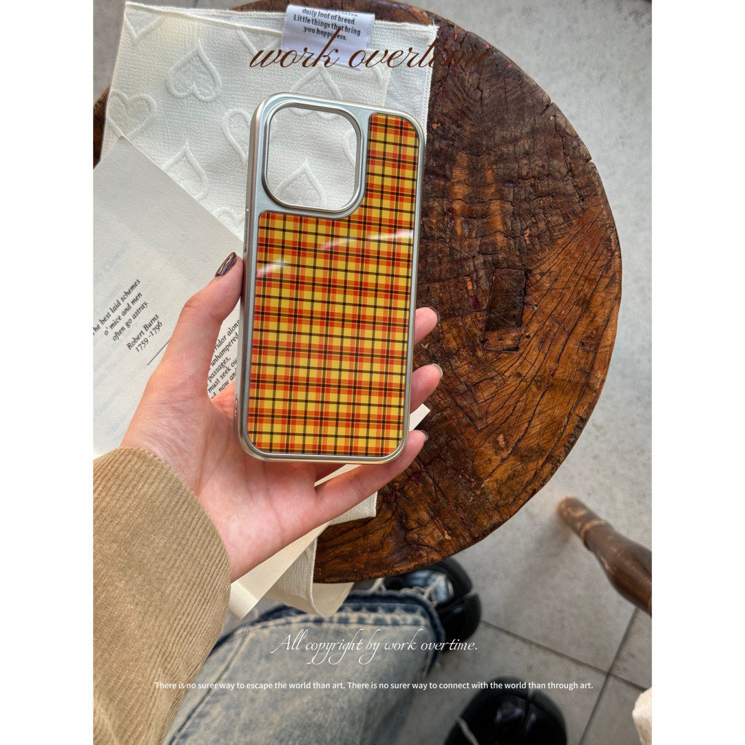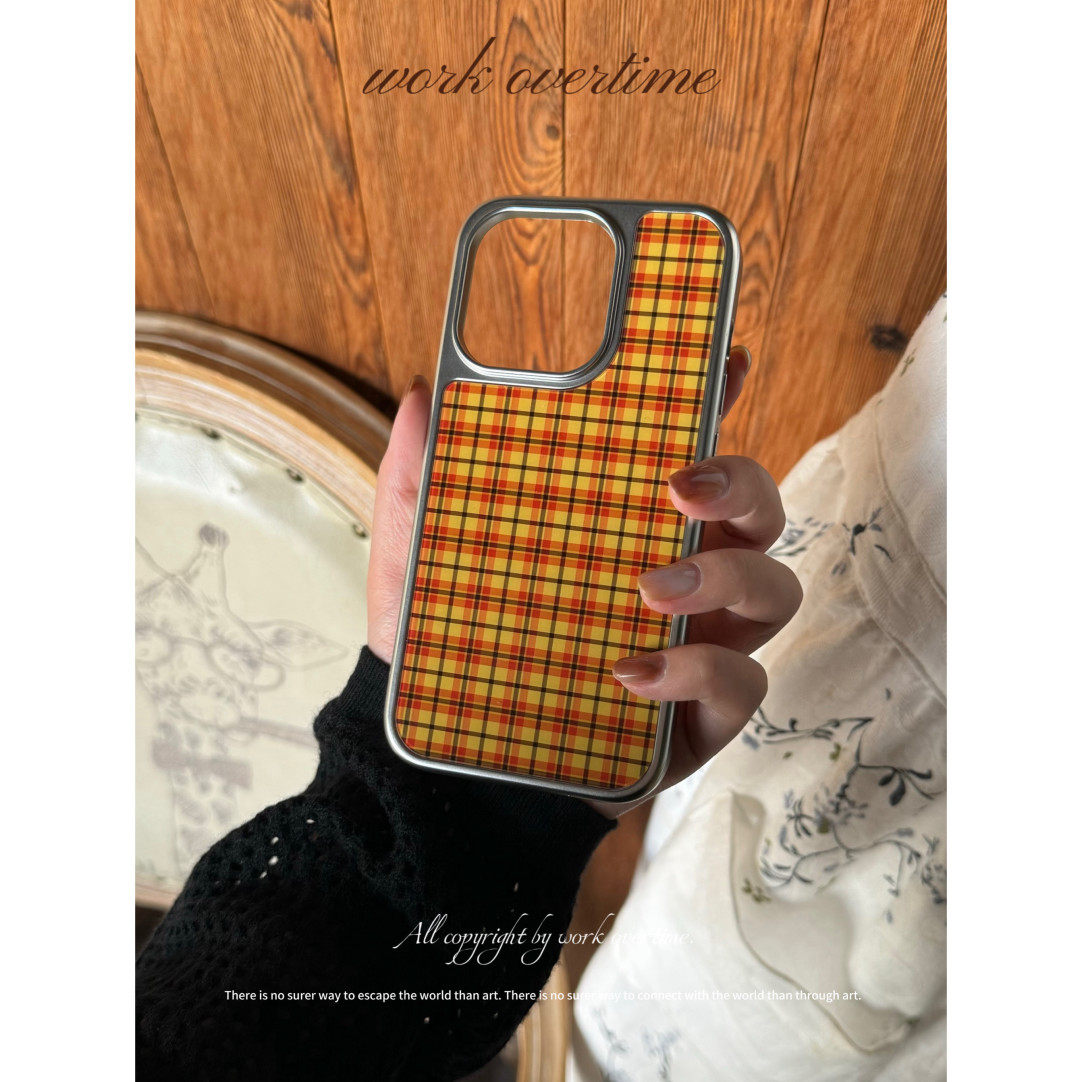个性创意复古格纹电镀银边软壳适用于苹果手机壳iPhone16promax亚克力15pro/14/13/12/11秋冬新品可爱卡通ins