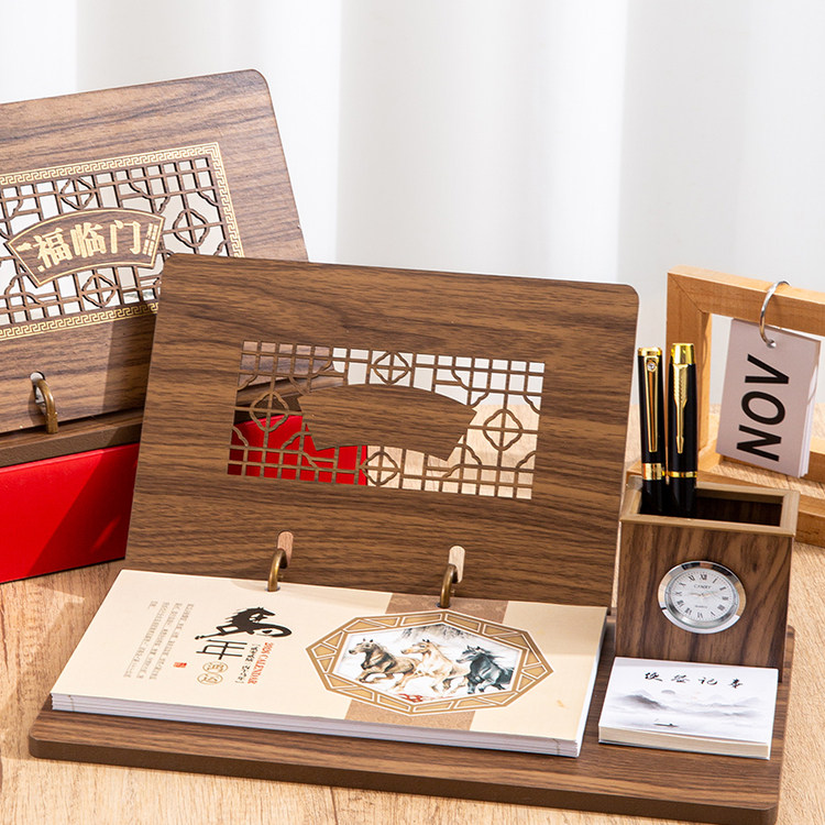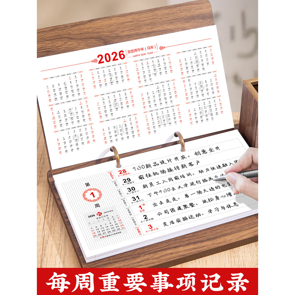 2026年台历礼盒装创意简约办公月历定制笔筒木质桌面摆件马年打卡日历计划本记事历新年礼品物流保险银行台历