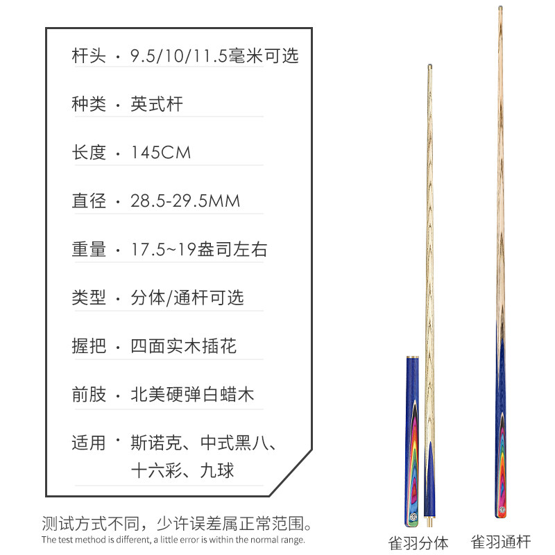 奥秘台球杆小头斯诺克雀羽中头中式黑八新手入门台球专用杆桌球杆