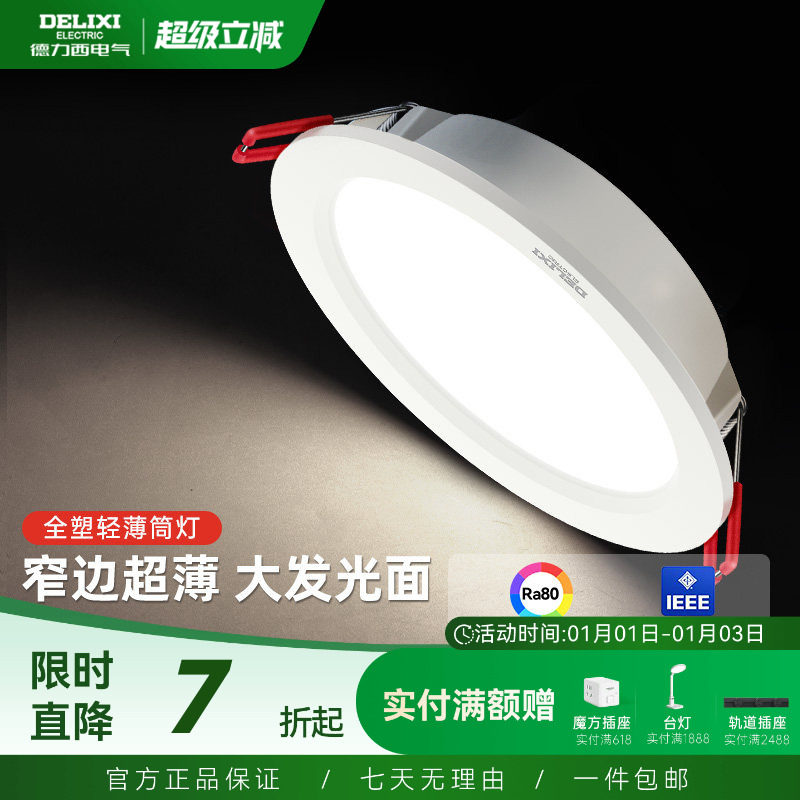 德力西led筒灯超薄孔灯客厅顶走廊天花灯嵌入式射灯PC家用
