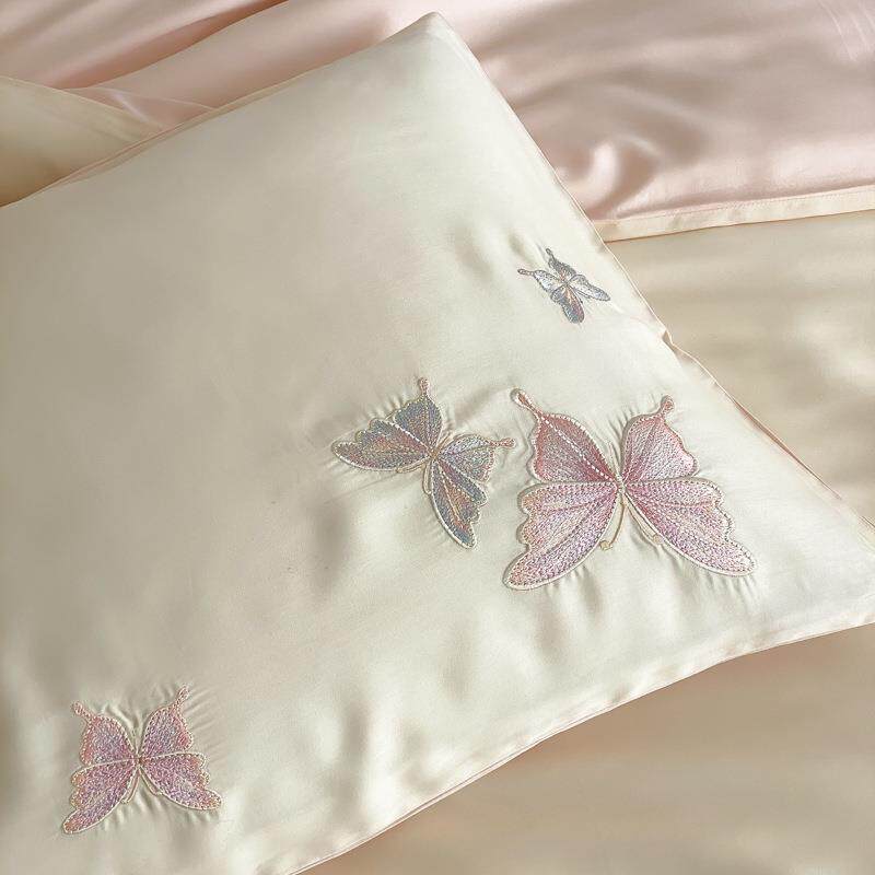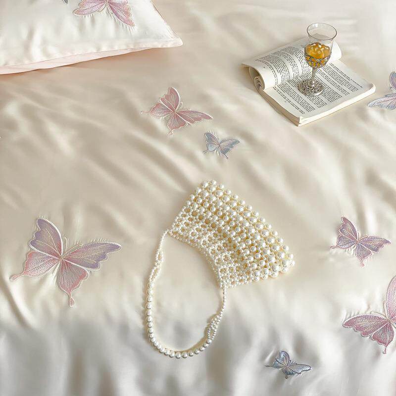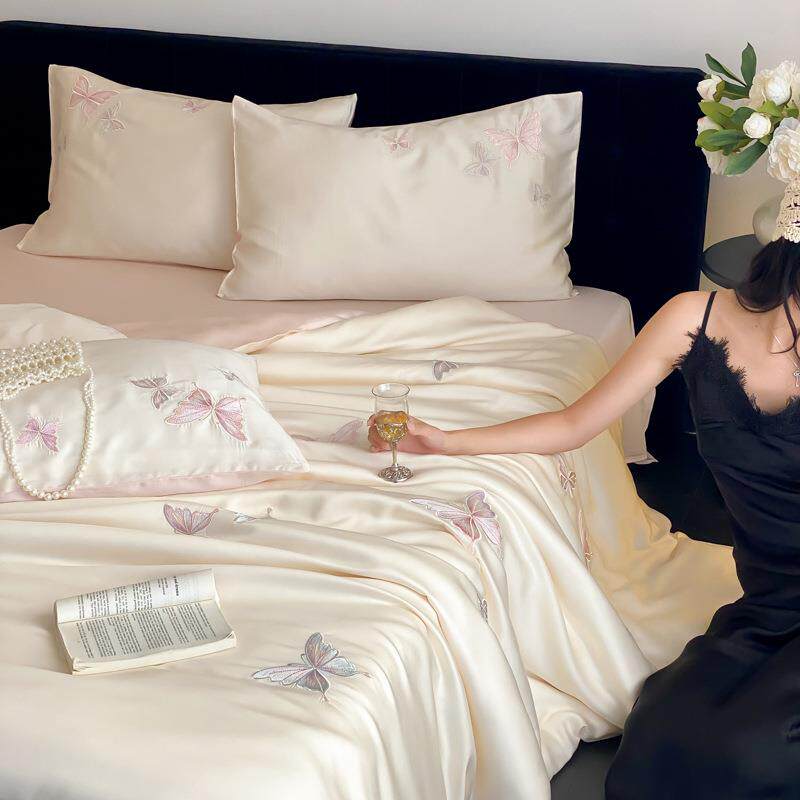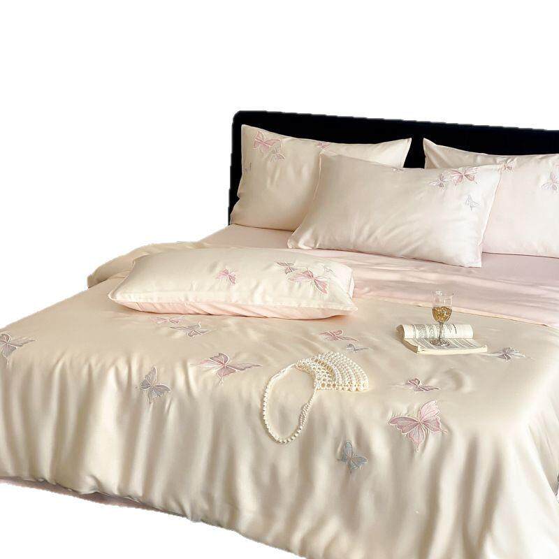 梦蝶60支兰精天丝四件套刺绣冰丝被套裸睡丝滑夏季床笠套件