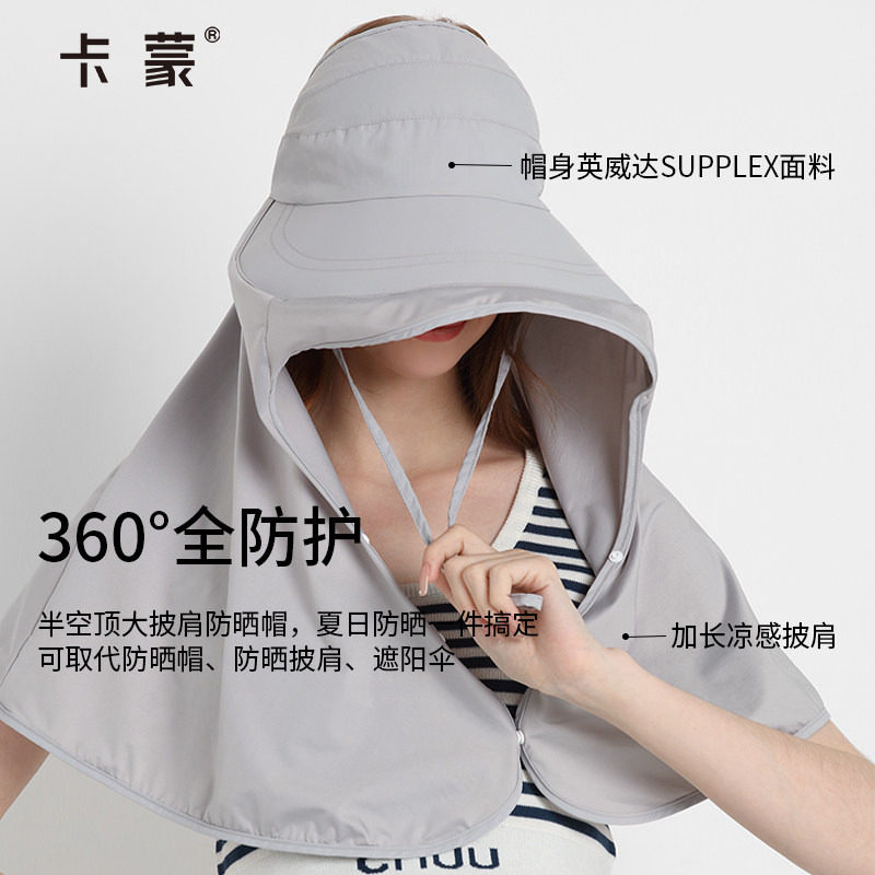 卡蒙学开车硬核防晒帽披肩空顶帽子一体女防紫外线冰丝透气小坎肩