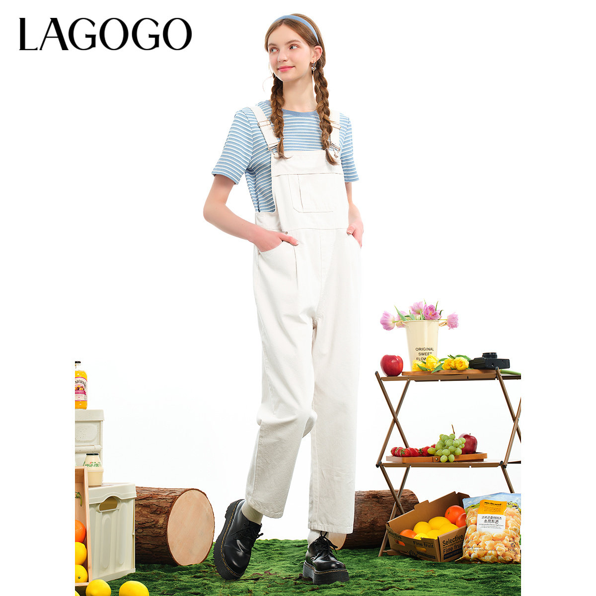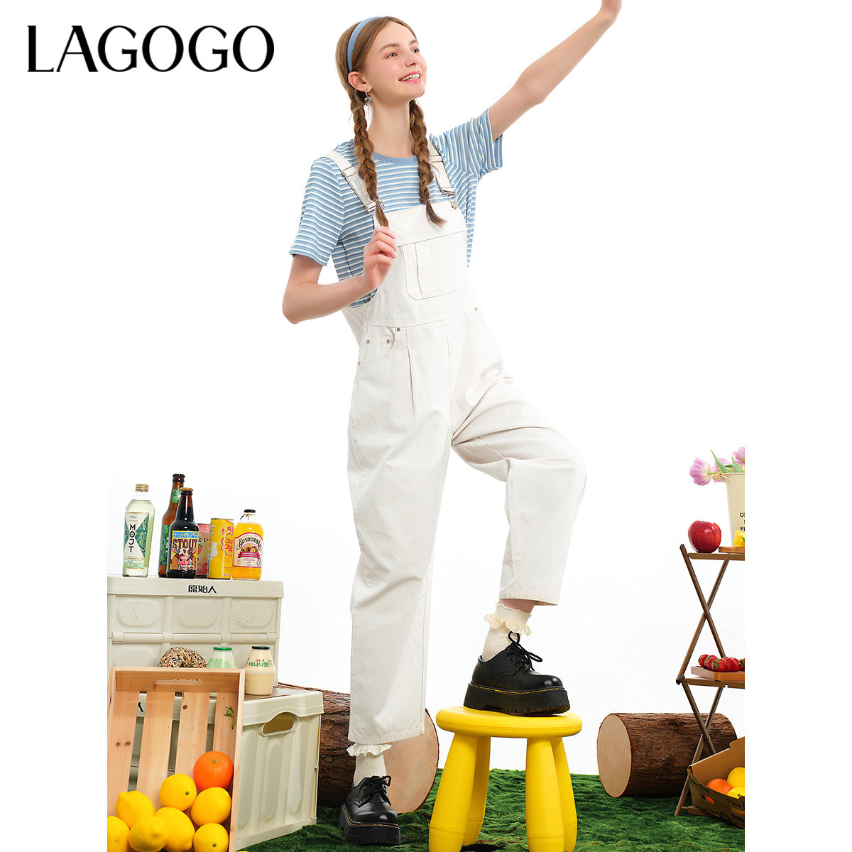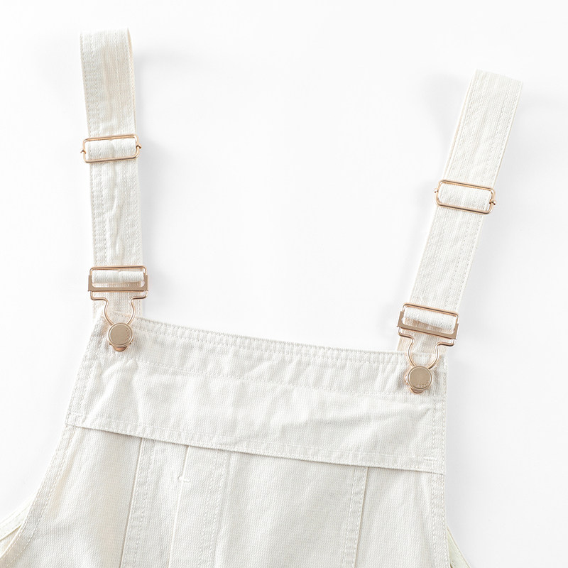 LAGOGO米白色工装休闲裤女拉谷谷春夏新款全棉舒适可调节背带裤