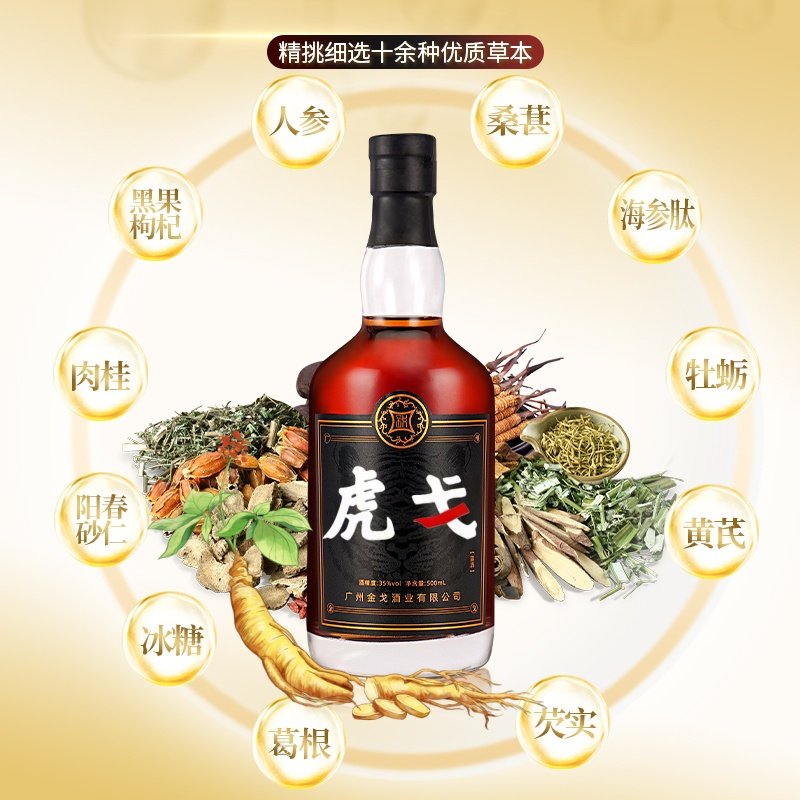 正品金戈酒双参露酒纯粮35度虎戈酒古井镇久戈广东人参瓶装枸杞