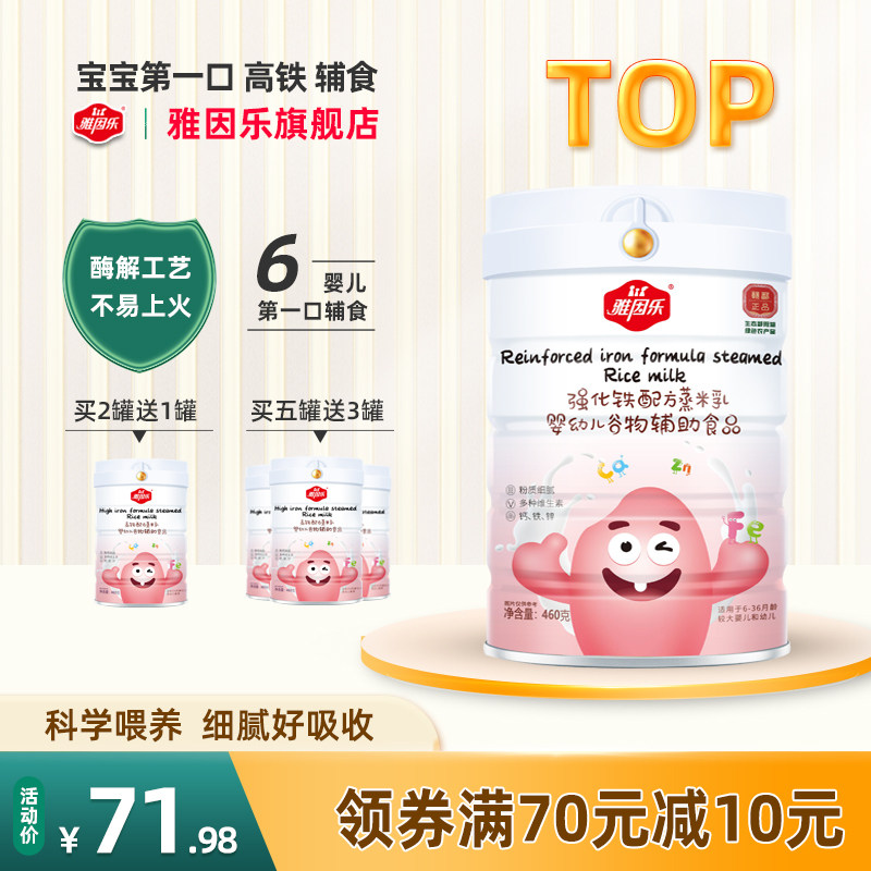 雅因乐强化铁配方蒸米乳婴儿辅食原味米乳宝宝米粉米糊罐装460g