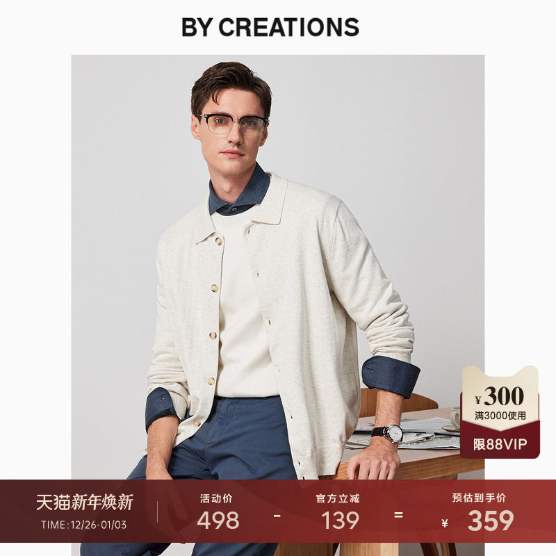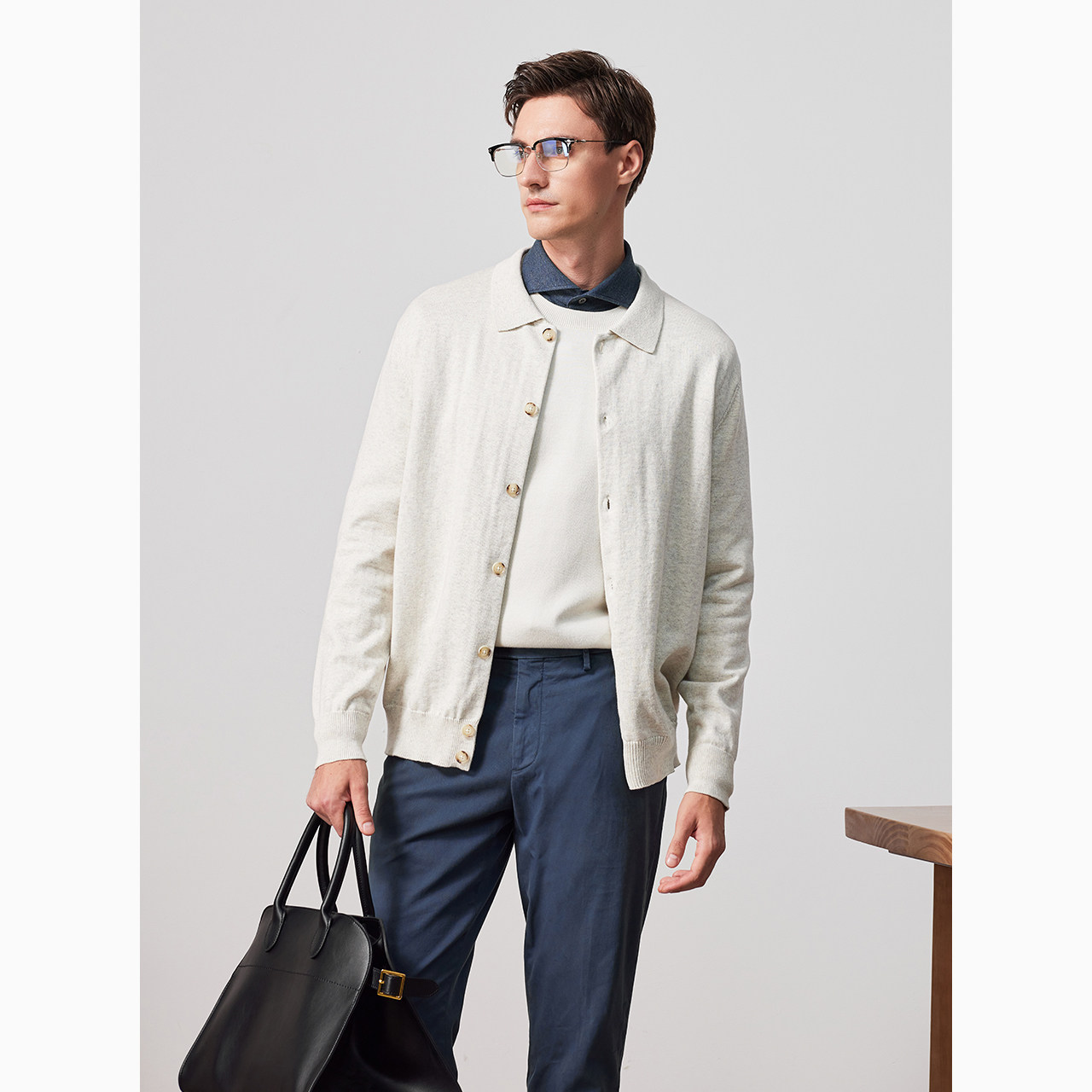 【可机洗】柏品羊绒棉针织开衫男秋新宽松休闲翻领易打理毛衣外套