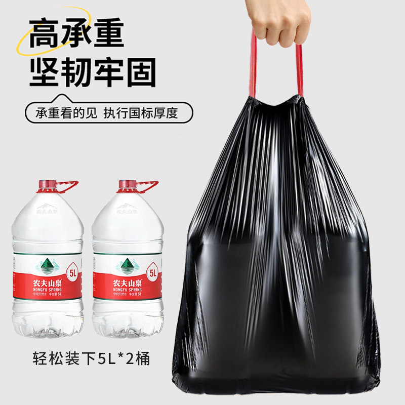 手提式抽绳垃圾袋家用加厚实惠批发装厨房黑色大号垃圾袋