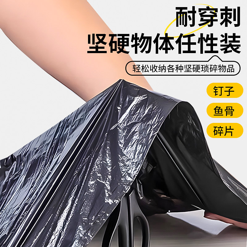 免撕抽绳大垃圾袋家用手提式加厚厨房黑色塑料袋子大号特厚收纳袋
