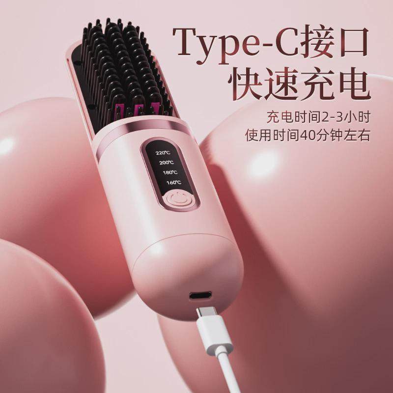 无线充电款直发梳负离子不伤发充电便携式宿舍迷你直发梳造型