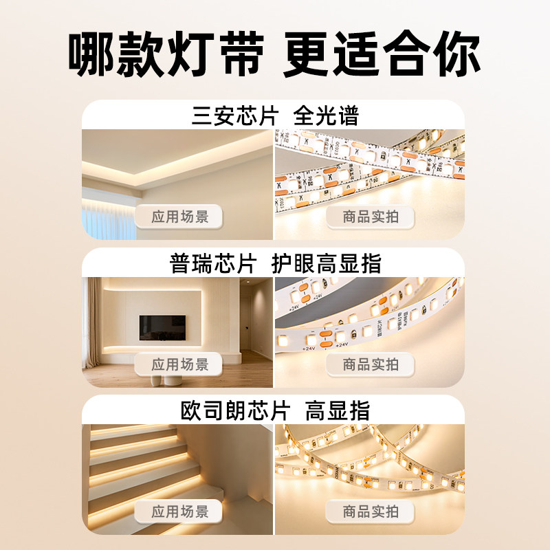 普瑞芯片led灯带98显全光谱高亮低压24V自粘无频闪室内家用灯条线
