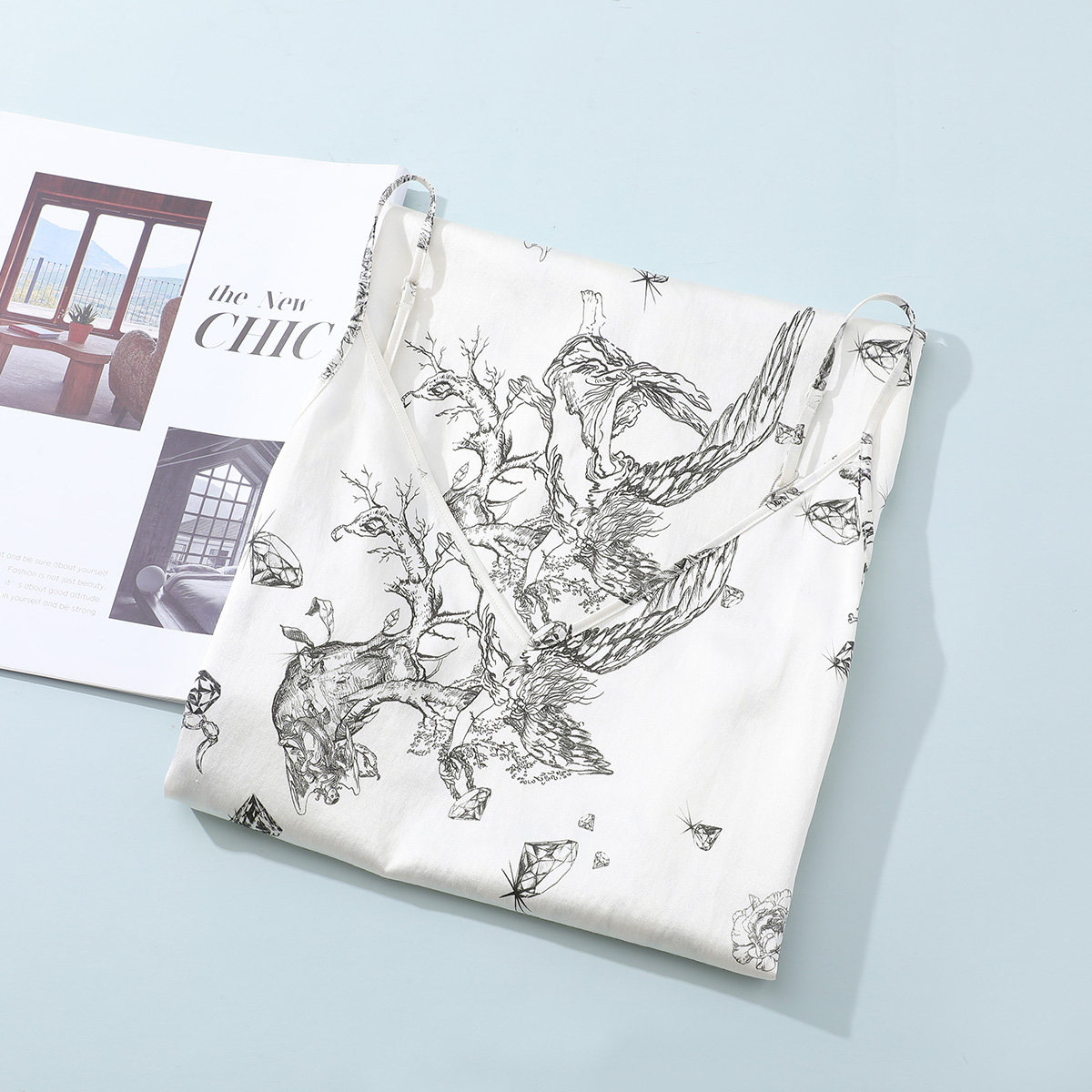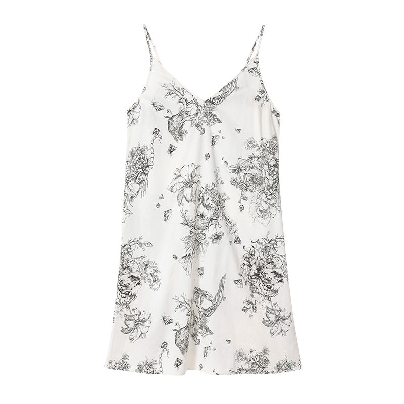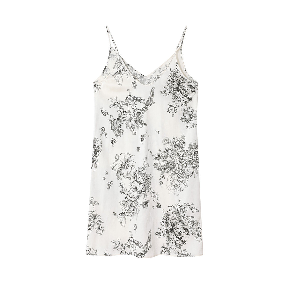 安莉芳时尚印花桑蚕丝棉V领吊带睡裙女士舒适薄款家居短裙EL00486