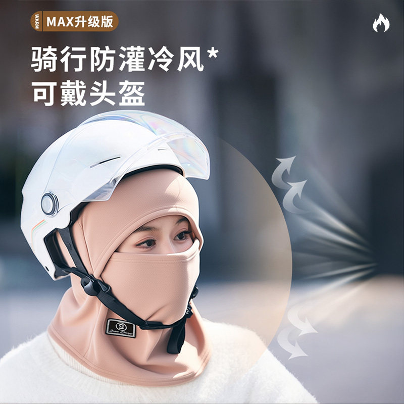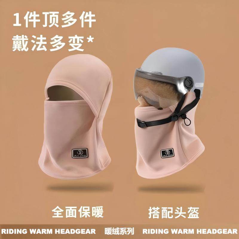 骑行防风面罩防寒头套秋冬头盔摩托车防护电动车围脖一体帽子骑车
