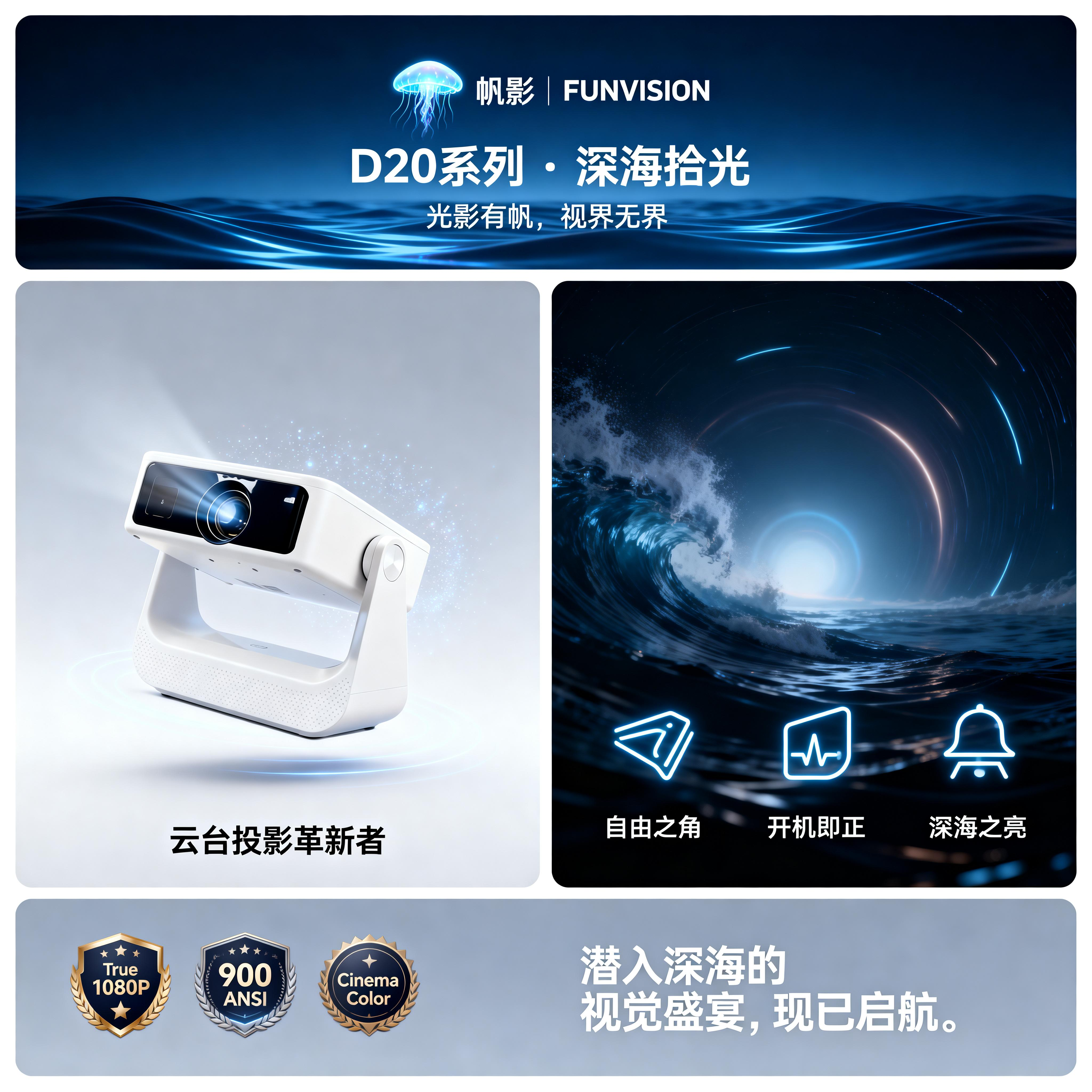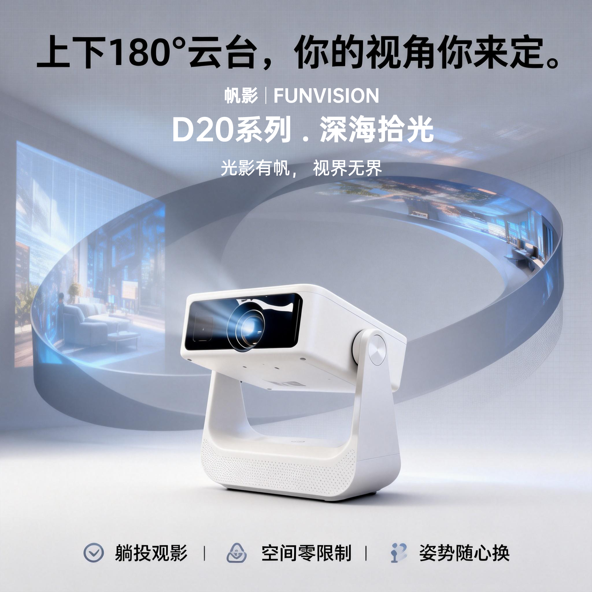 帆影【白墙直投】2026新款家庭云台音箱家用超高清投影仪手机投屏宿舍卧室自动对焦1080P送全年影视会员