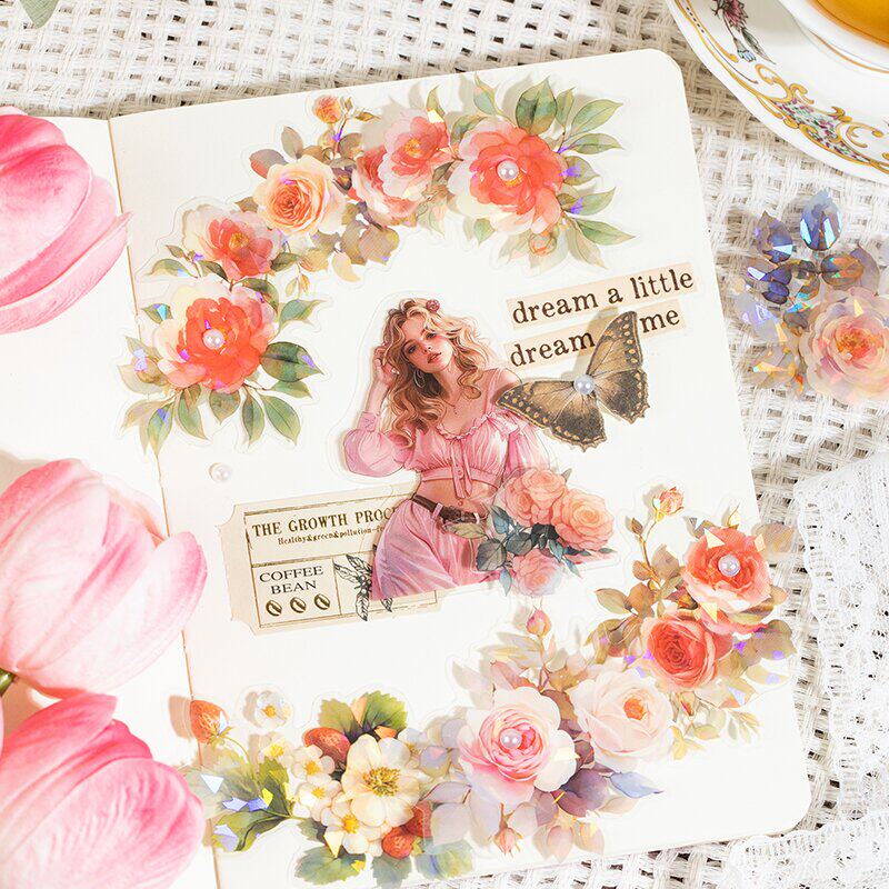 植物园手账贴纸清新多肉浪漫花卉玫瑰可爱少女手机壳DIY素材图案