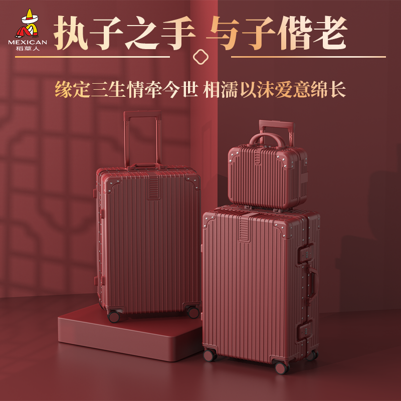 稻草人结婚子母陪嫁行李箱子红色密码皮箱旅行箱婚礼新娘嫁妆拉杆