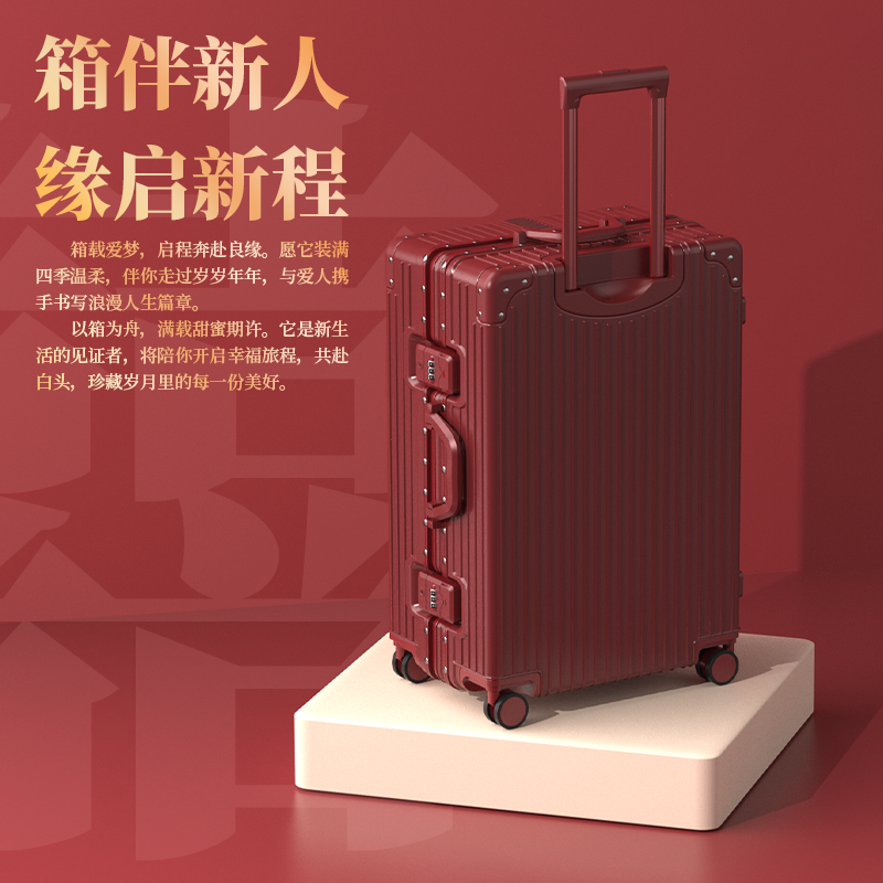 结婚行李箱陪嫁箱红色箱子拉杆箱女皮箱婚礼用密码新娘嫁妆箱24寸