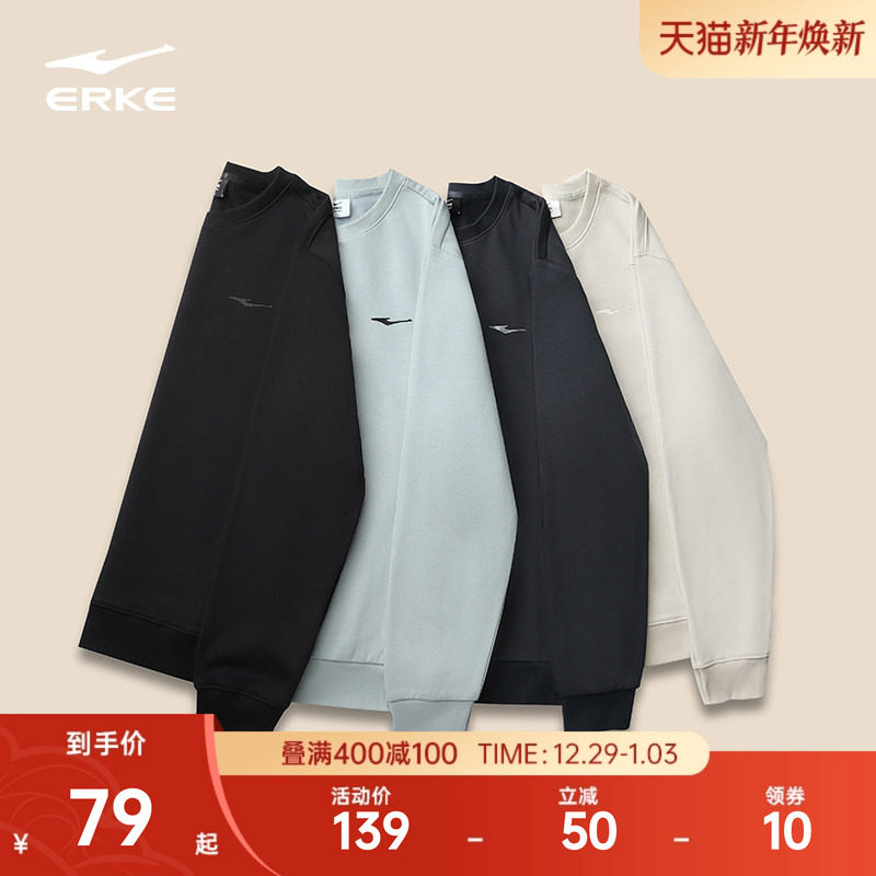 鸿星尔克卫衣男冬季新款男士青少年运动加绒长袖圆领上衣休闲男装